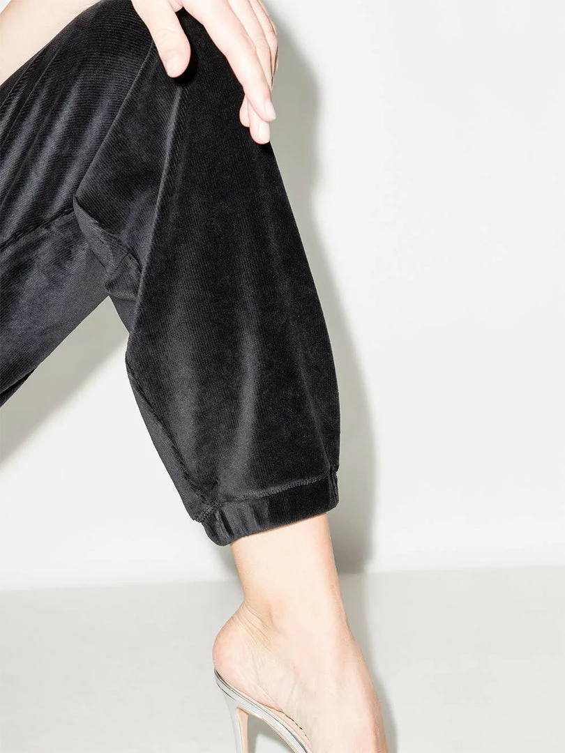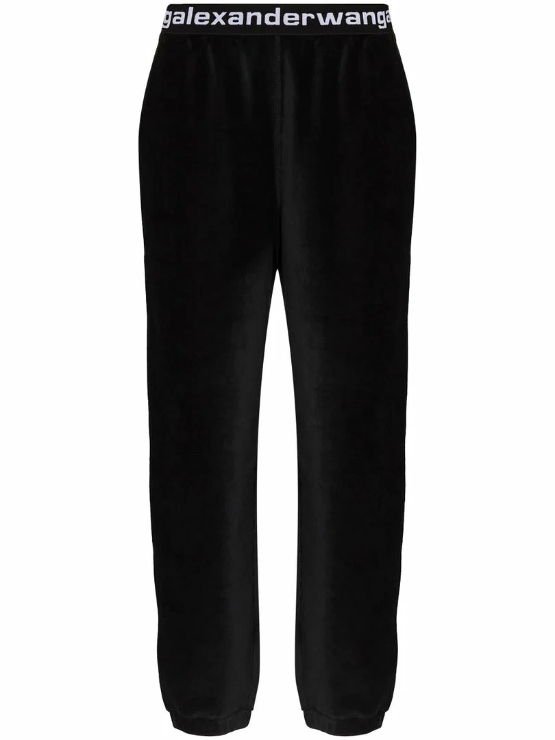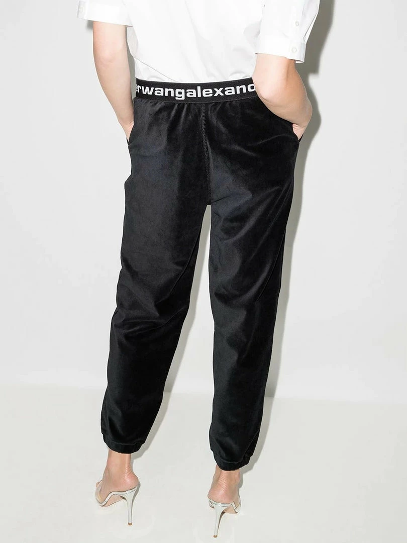 alexanderwang.t black ‘Stretch Corduroy Logo Sweatpants’ featuring a branded elasticated waistband, side slip pockets, a straight leg fit, a soft velvet corduroy finish and pulls on. Item fits true to size. Model is wearing a size S.