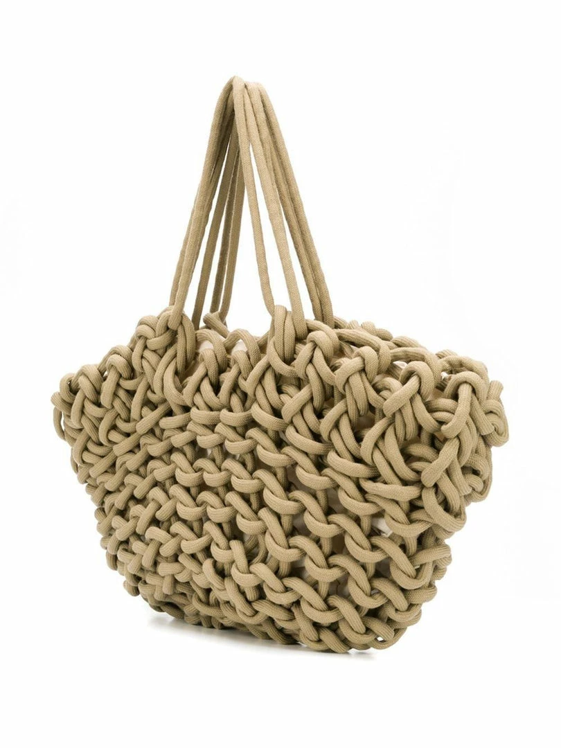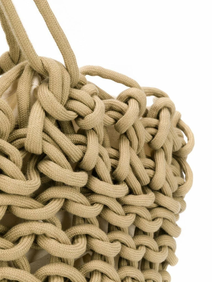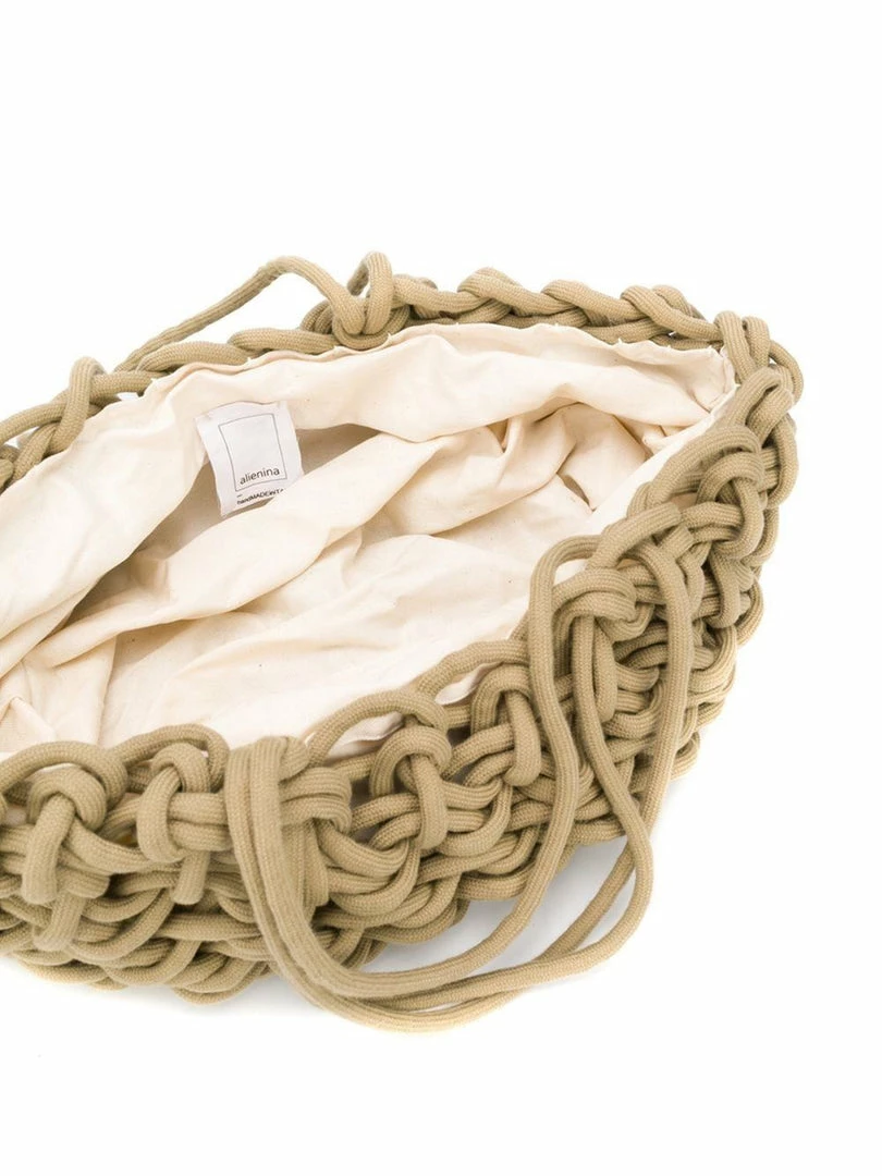 Alienina camel toned ‘Braided Bag’ featuring two straps, a braided design, an open top design and an internal slip pocket.