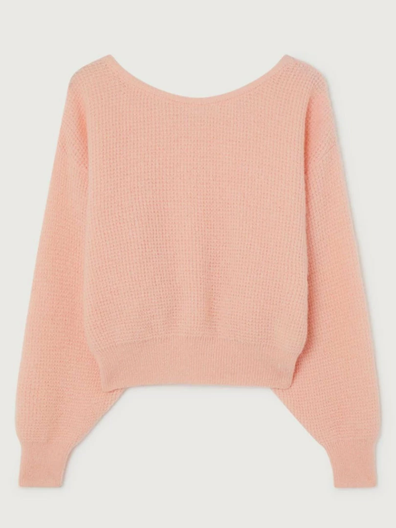 American Vintage baby pink ‘Omobay’ sweater featuring a round neckline, dropped shoulders, long sleeves, ribbed hems and pulls on. Item fits true to size.