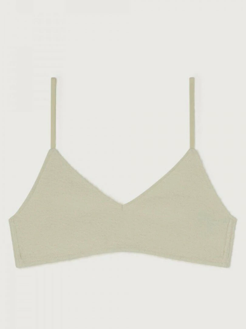 American Vintage ecru ‘Bobypark’ bralette featuring adjustable straps, a V-neckline, a back hook fastening and a textured fabric. Item fits true to size.