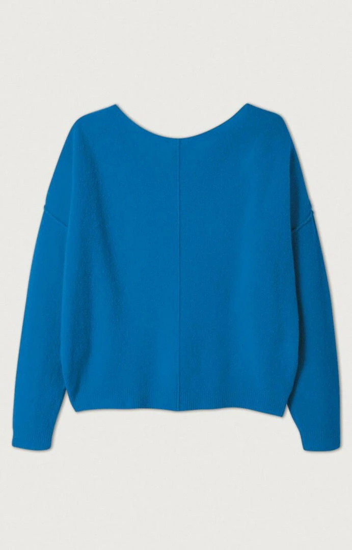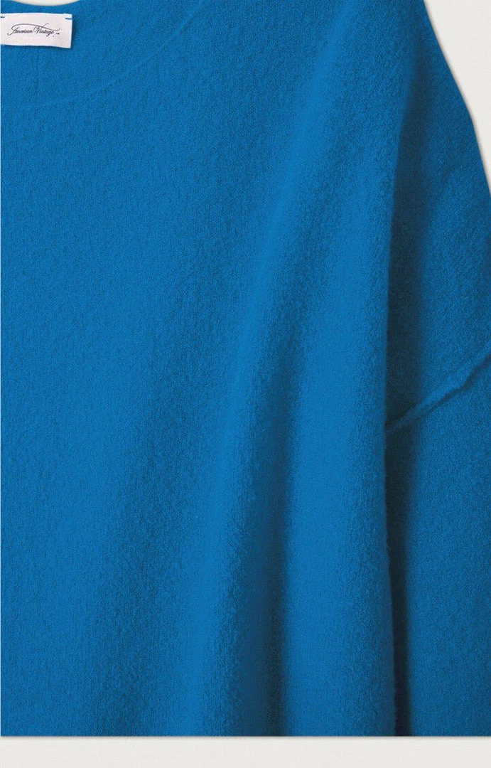 American Vintage ‘Damsville H22’ knit sweater featuring a round neck with a raw hem finish, long sleeves, ribbed hems, a visible centre seam at the back and pulls on. Item fits true to size.Â