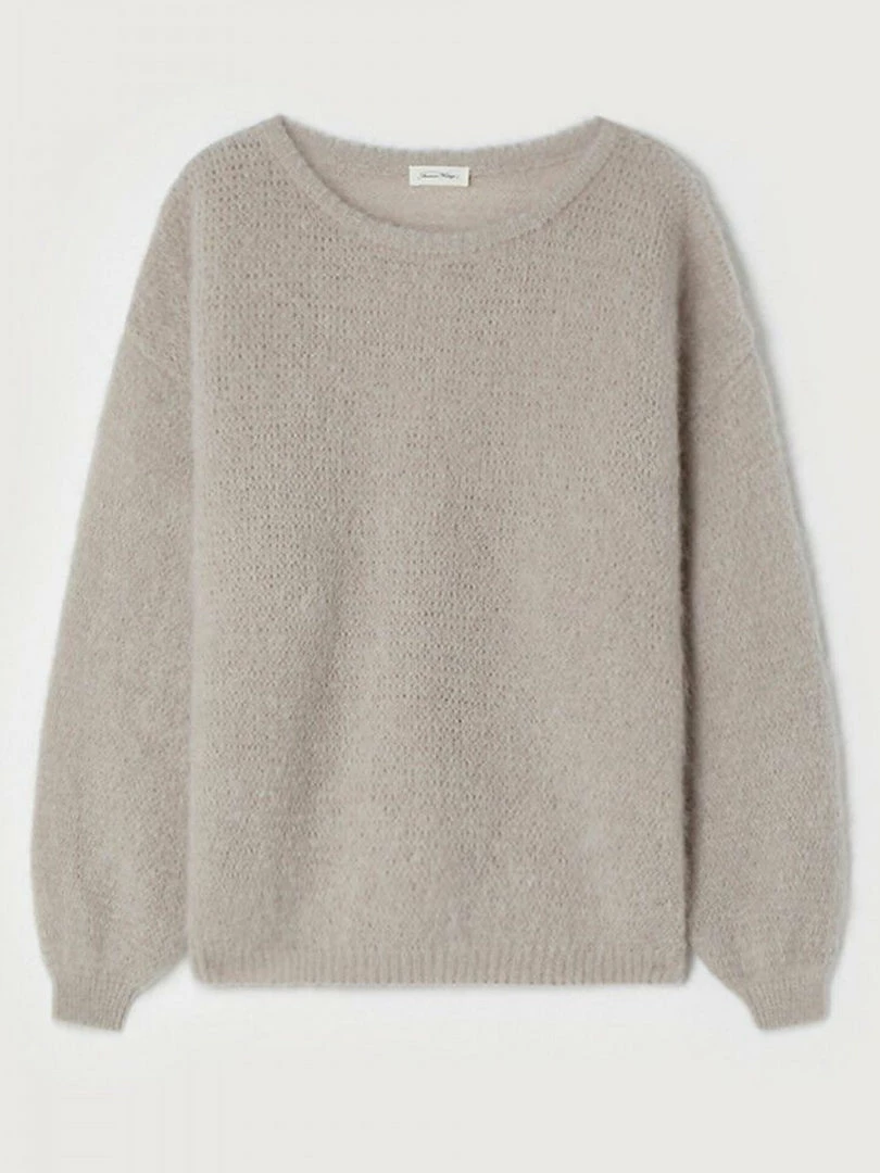 American Vintage taupe oversized ‘Pinobery’ mohair sweater featuring a crew neckline, long sleeves, ribbed hems and pulls on.
