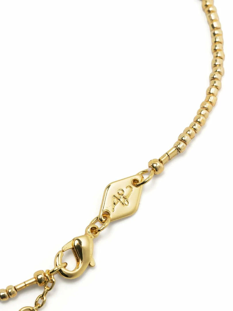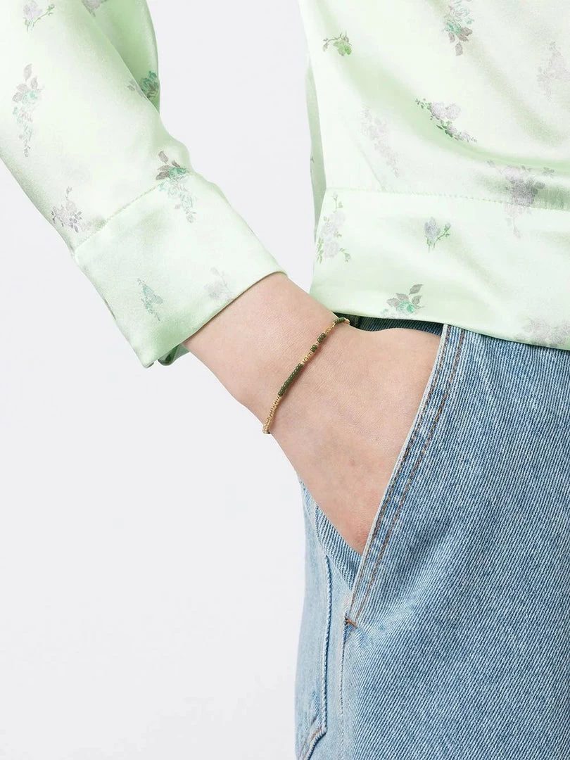 Anni Lu army green ‘Asym 22’ beaded bracelet featuring a gold and coloured bead design and an adjustable clasp closure. Length is 15.5cm to 18cm. Made in Denmark.