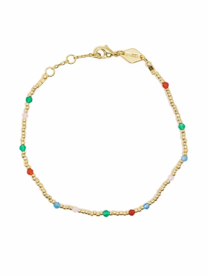 Anni Lu ‘Juvel’ bracelet featuring gold seed beads, multicoloured semi-precious gemstones, gold tone hardware and an adjustable clasp fastening. Length is 15.5-18cm. Made in Denmark.