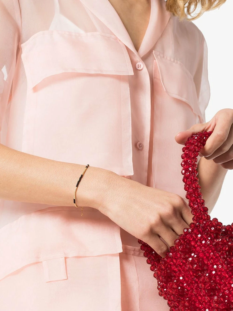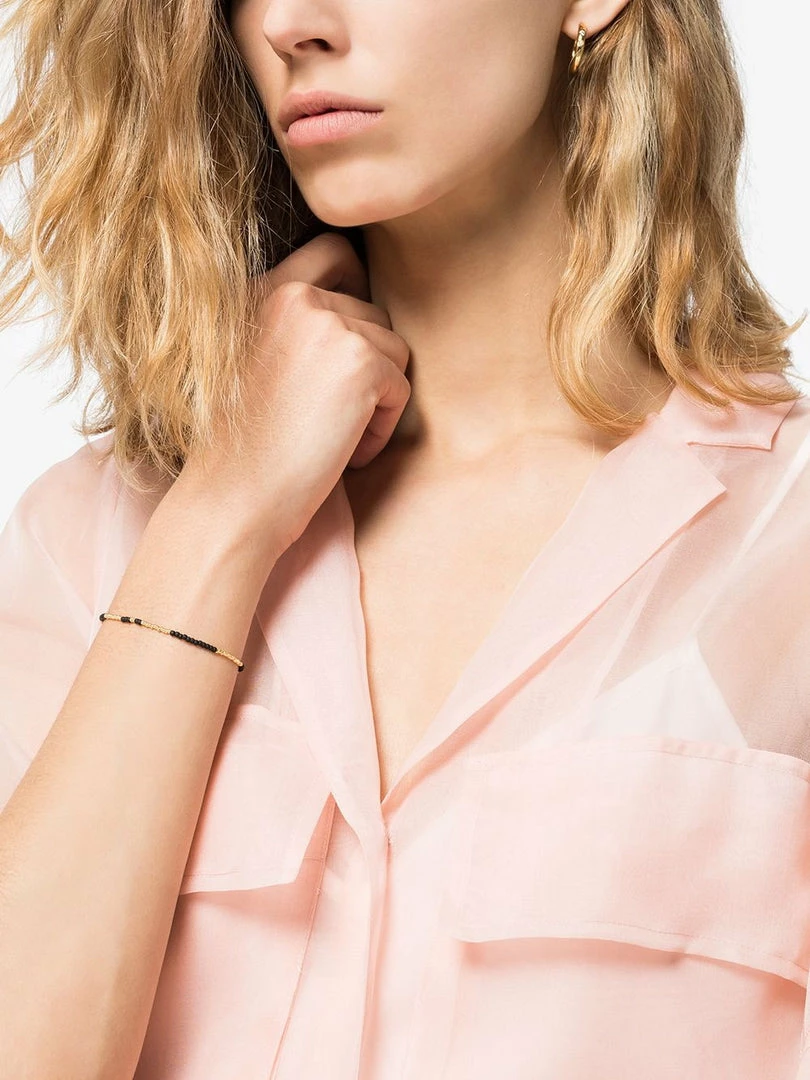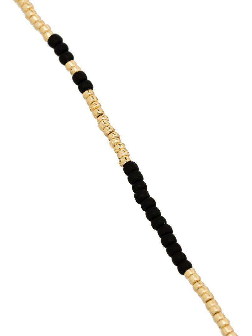 Anni Lu ‘Asym 22’ beaded bracelet featuring a gold and black coloured bead design and an adjustable clasp closure. Length is 15.5cm to 18cm. Made in Denmark.