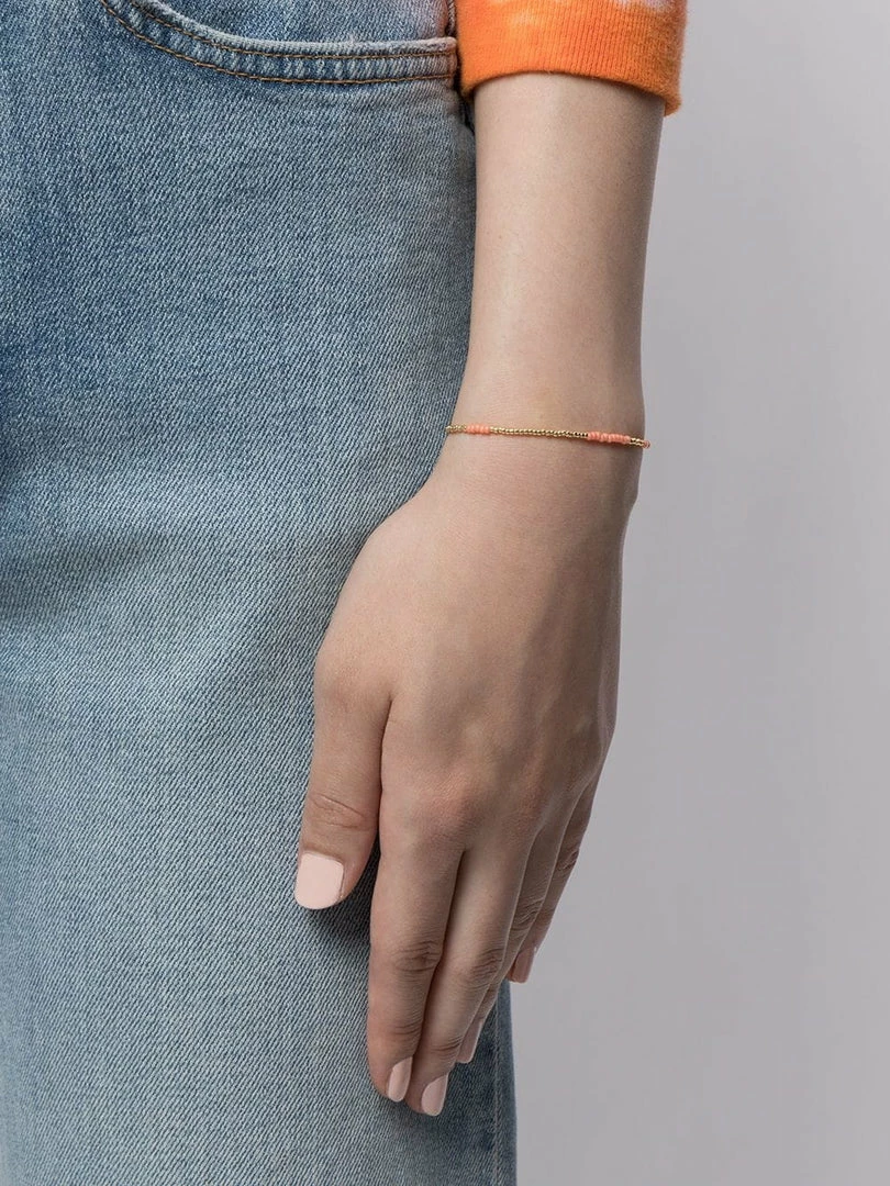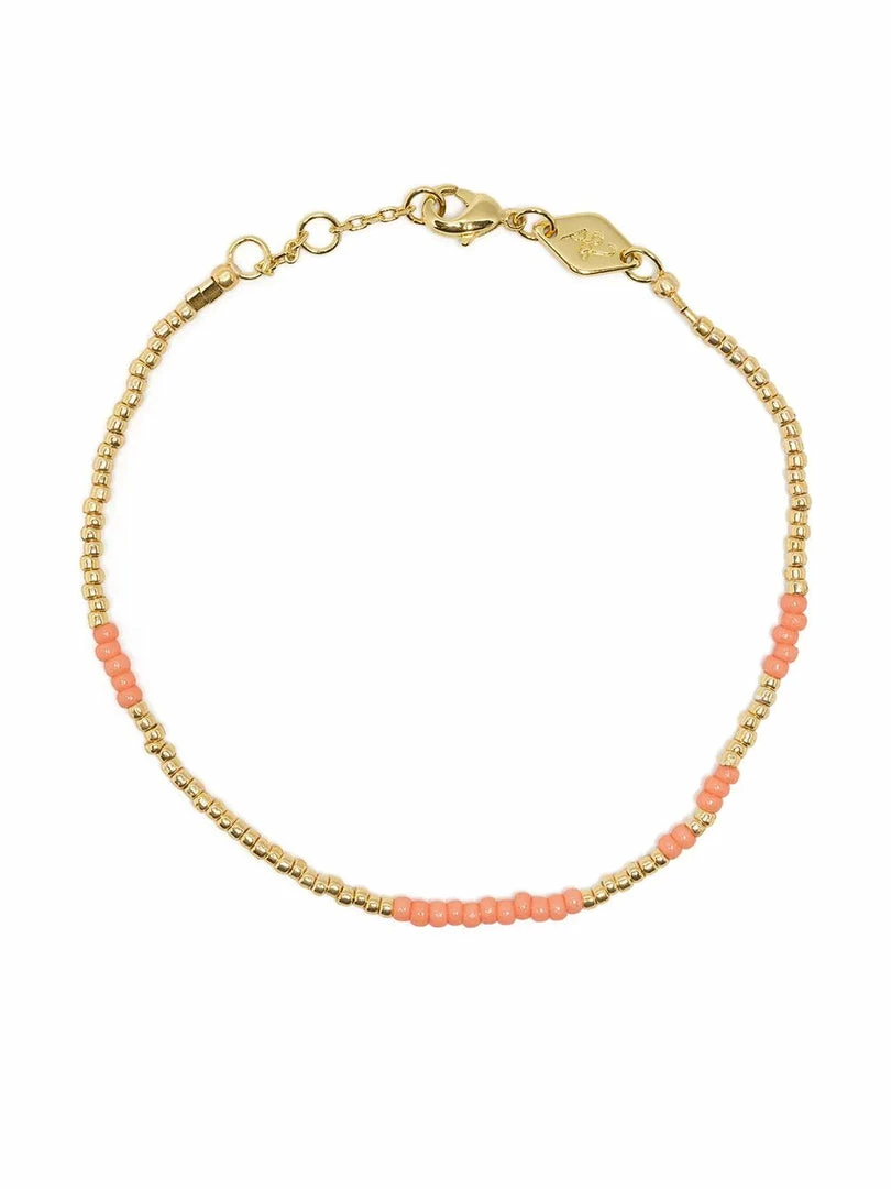 Anni Lu ‘Asym 22’ beaded bracelet featuring a gold and peach coloured bead design and an adjustable clasp closure. Length is 15.5cm to 18cm. Made in Denmark.