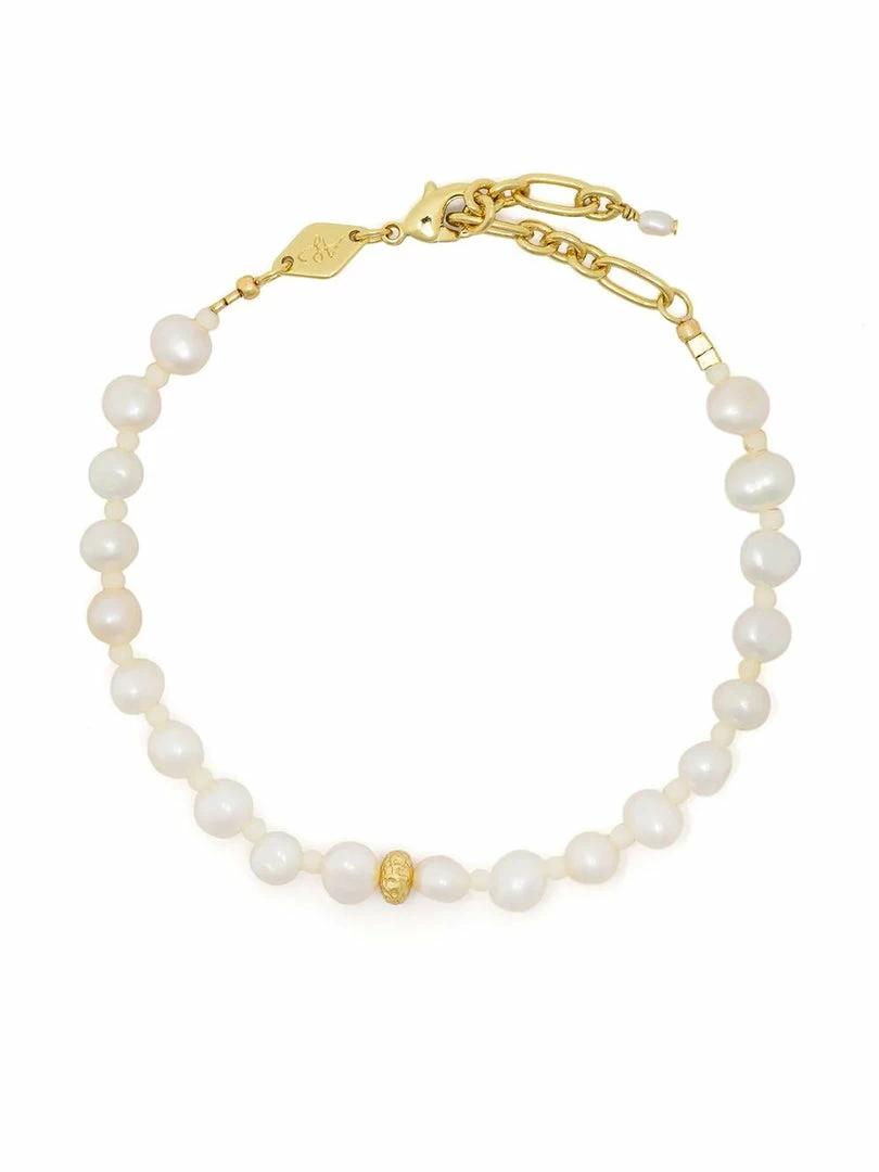 Anni Lu ‘Stellar Pearly’ bracelet featuring a pearl and gold beaded design, gold tone hardware and an adjustable clasp fastening. Length is 17.5-20cm. Made in Denmark.