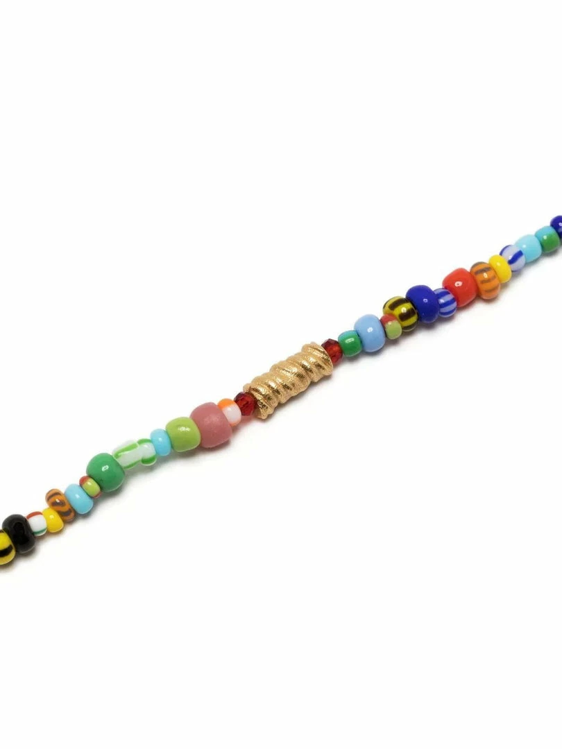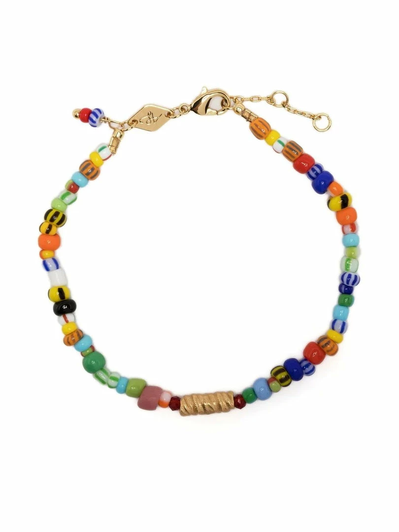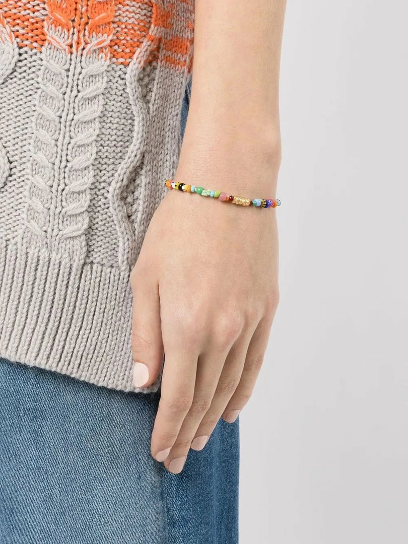 Anni Lu ‘Wavy Alaia’ bracelet featuring a multicoloured glass bead design, gold tone hardware and an adjustable 18 – 19.5cm lobster clasp fastening. Made in Denmark.