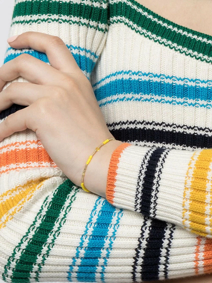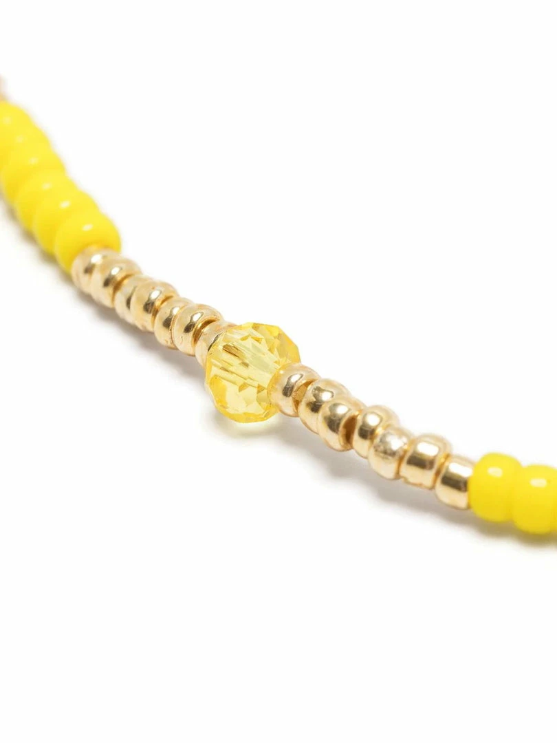 Anni Lu ‘Clemence’ beaded bracelet featuring a gold and yellow coloured bead design and an adjustable clasp closure. Length is 15.5-18cm. Made in Denmark.