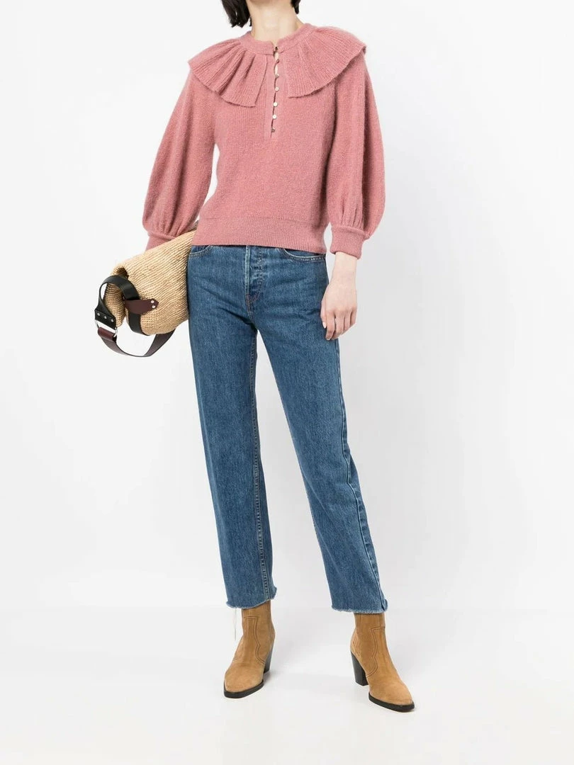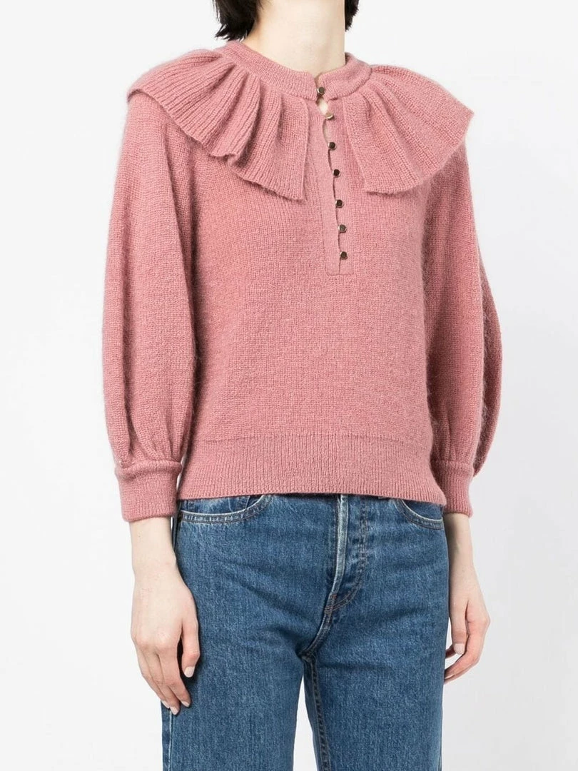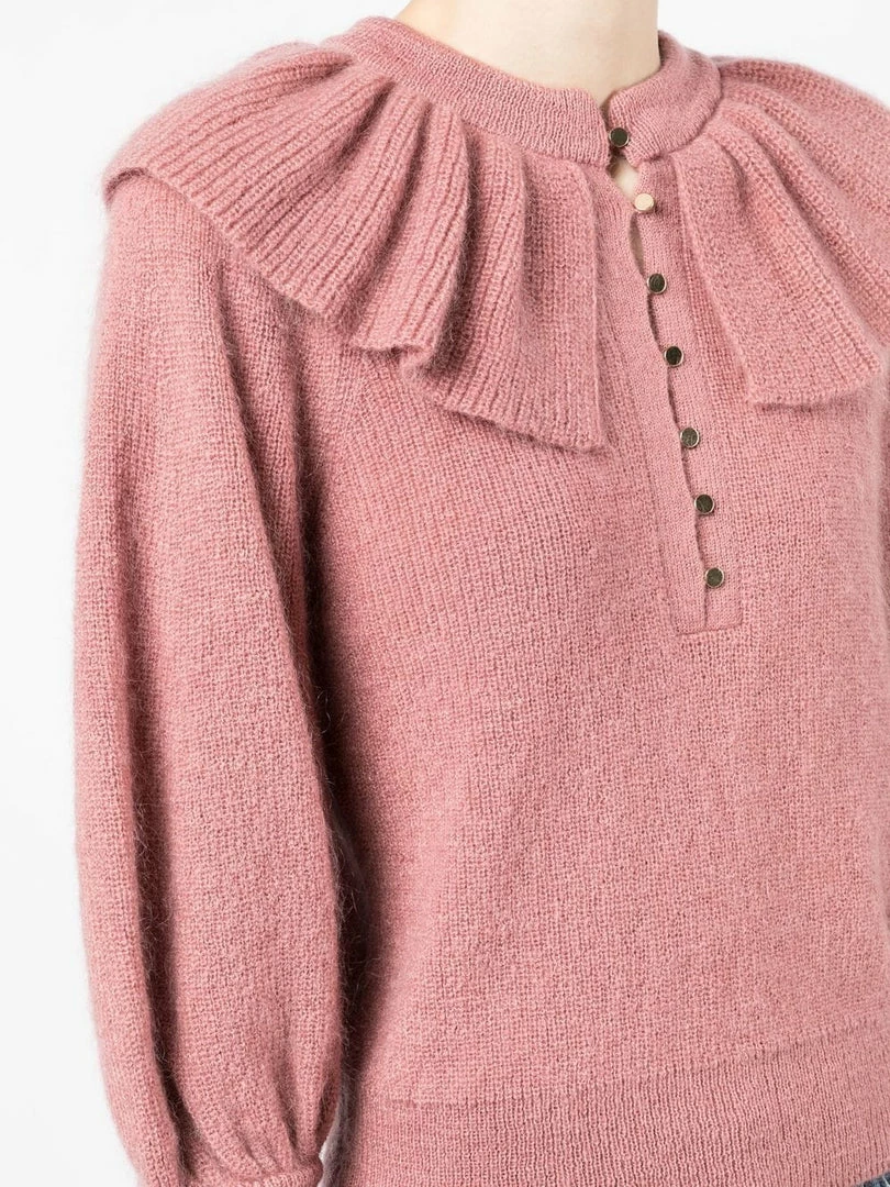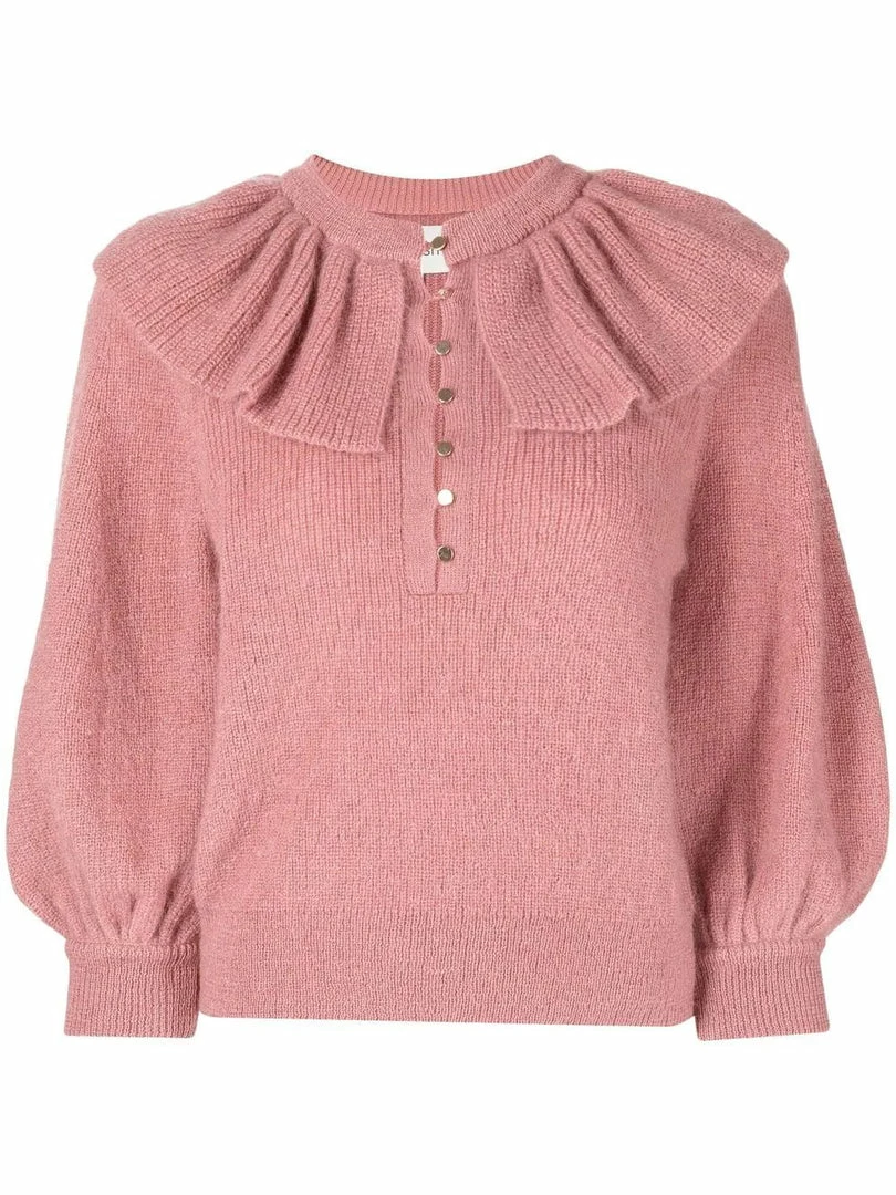 Ba&sh Pink ‘Hoa’ Ruffle Sweater Clothing