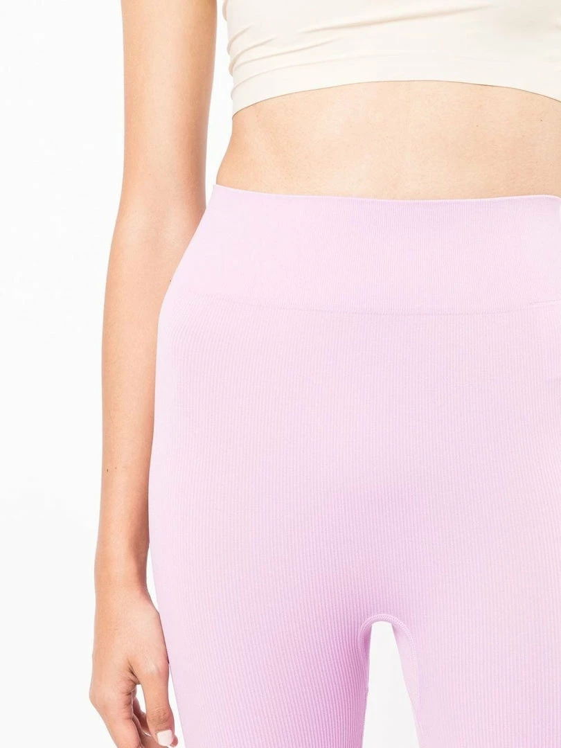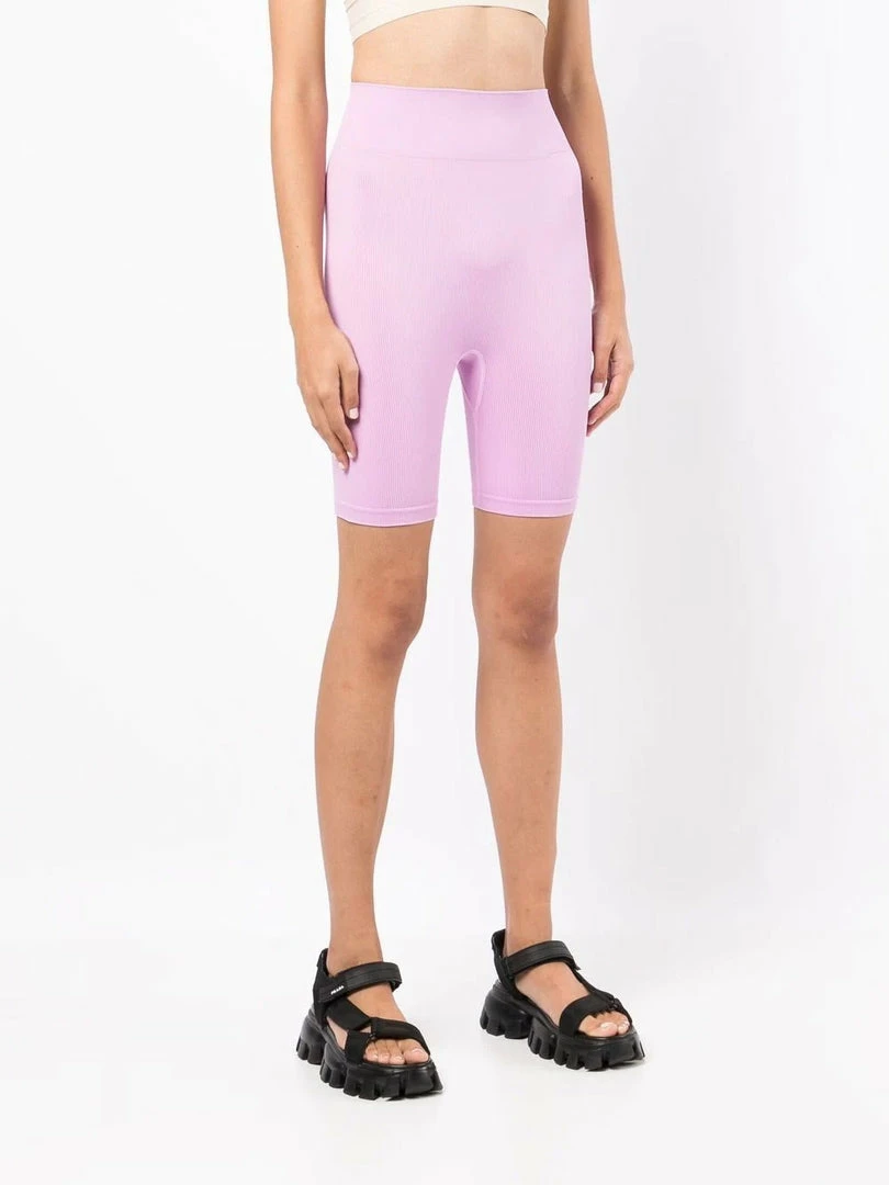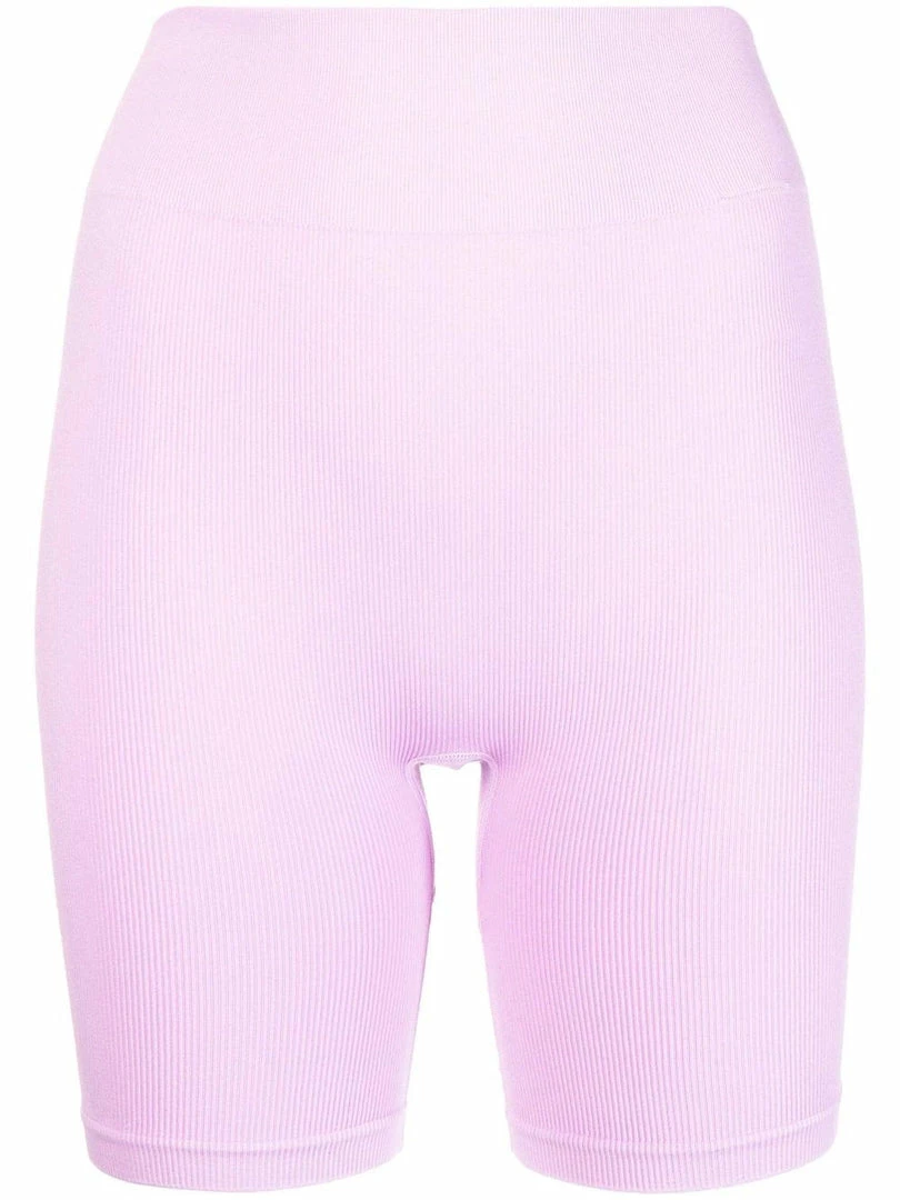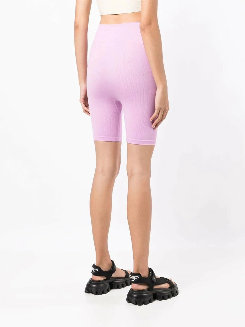 Baum Und Pferdgarten lilac ‘Jela’ ribbed cycling shorts featuring a high waist style and pulls on. Item fits true to size. Model is wearing a size XS.