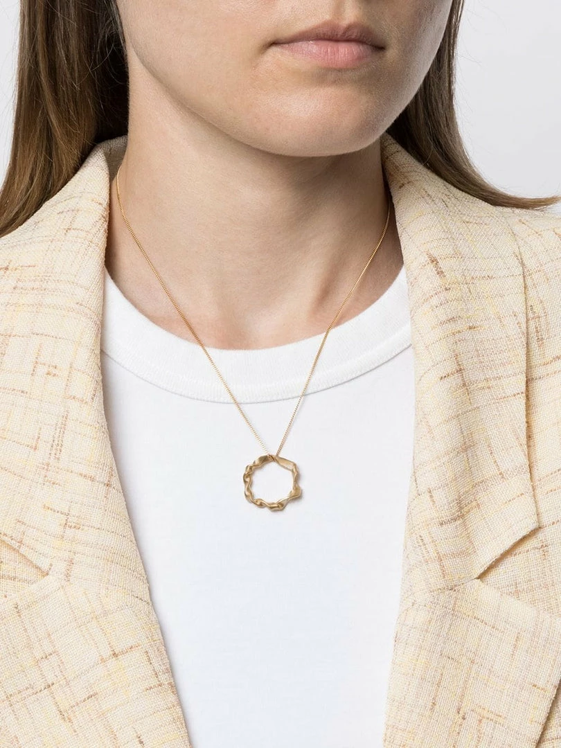 Completed Works gold vermeil ‘Flux’ necklace featuring a twisted pendant design, a thin chain and a clasp fastening. Made in England. One Size.