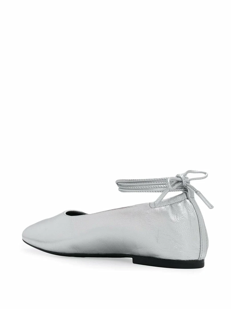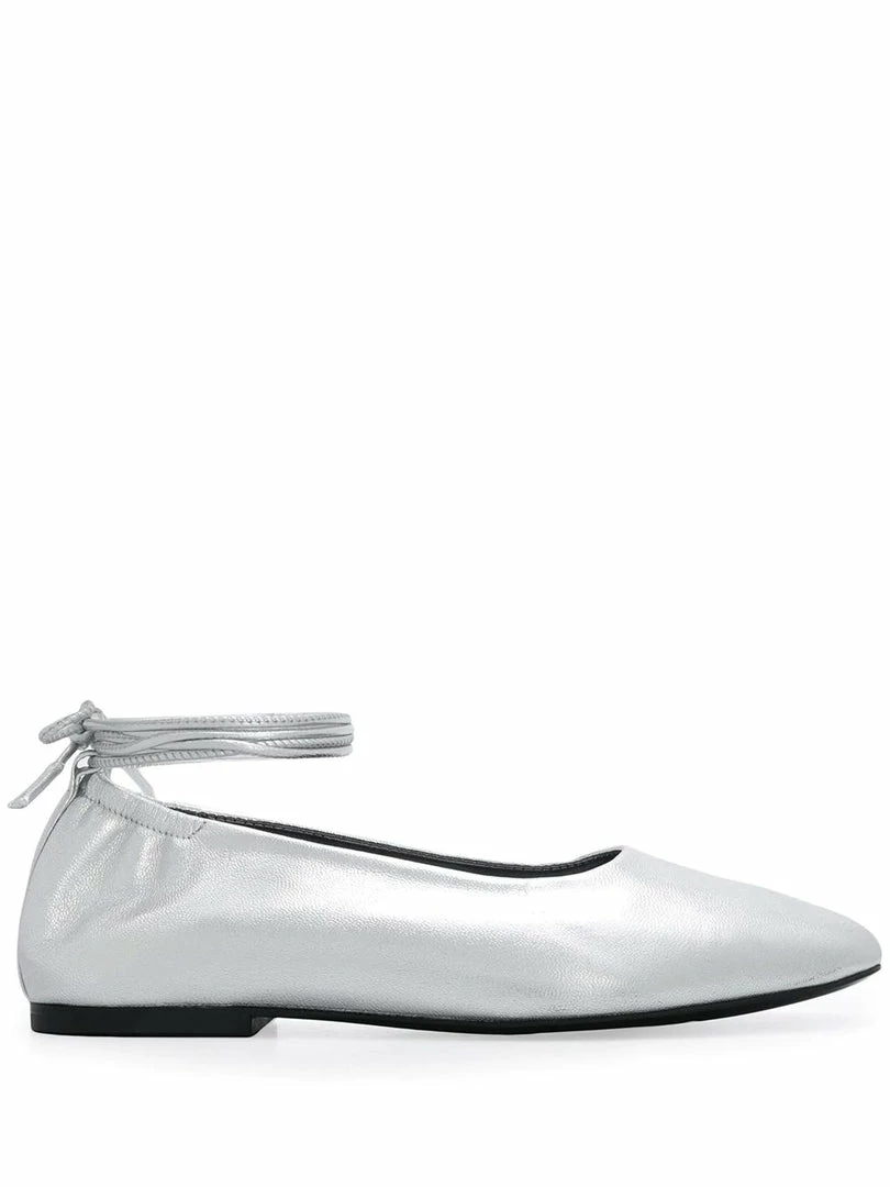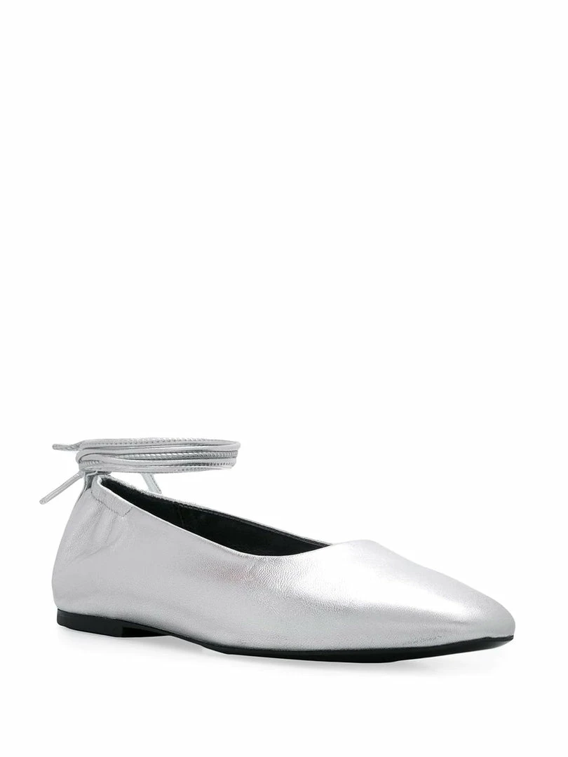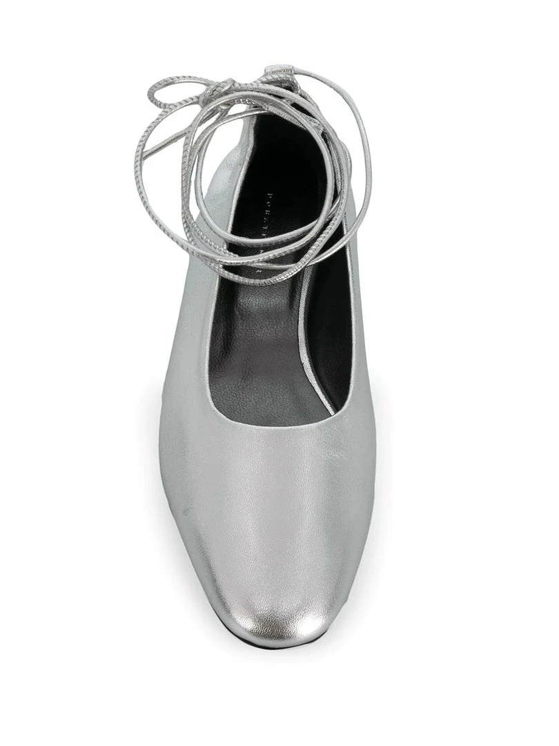 Dorateymur metallic ‘Ballerina Pumps’ featuring an almond shaped toe, a lace up ankle fastening, a branded insole and a flat heel. Item fits true to size.