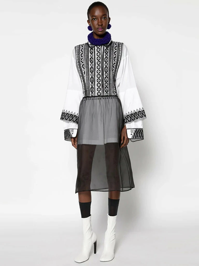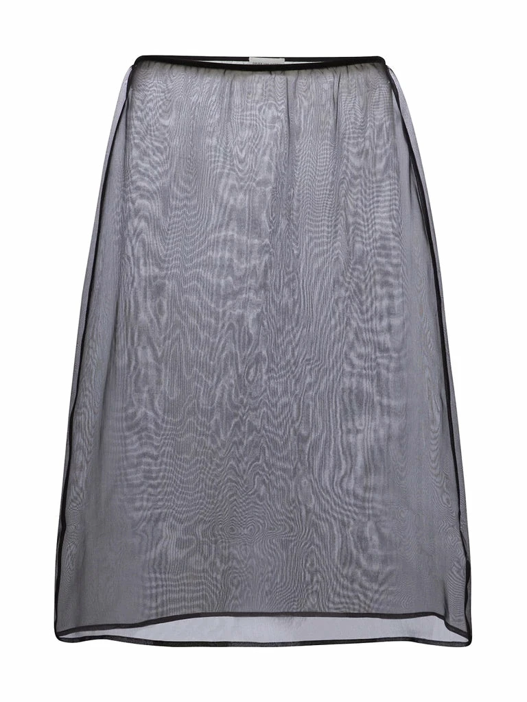 Dries Van Noten black ‘Sola’ sheer midi skirt featuring an elasticated waistband, a midi length and pulls on. Item fits true to size.
