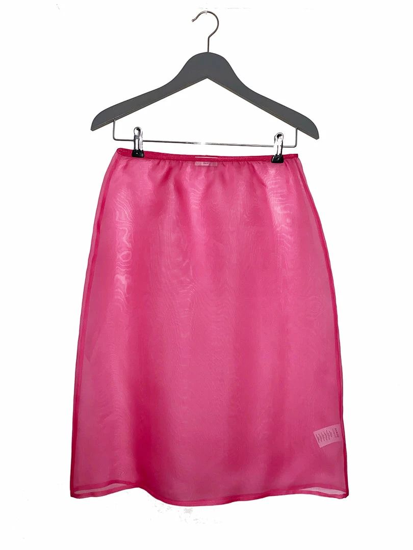 Dries Van Noten pink ‘Sola’ sheer midi skirt featuring an elasticated waistband, a midi length and pulls on. Item fits true to size.