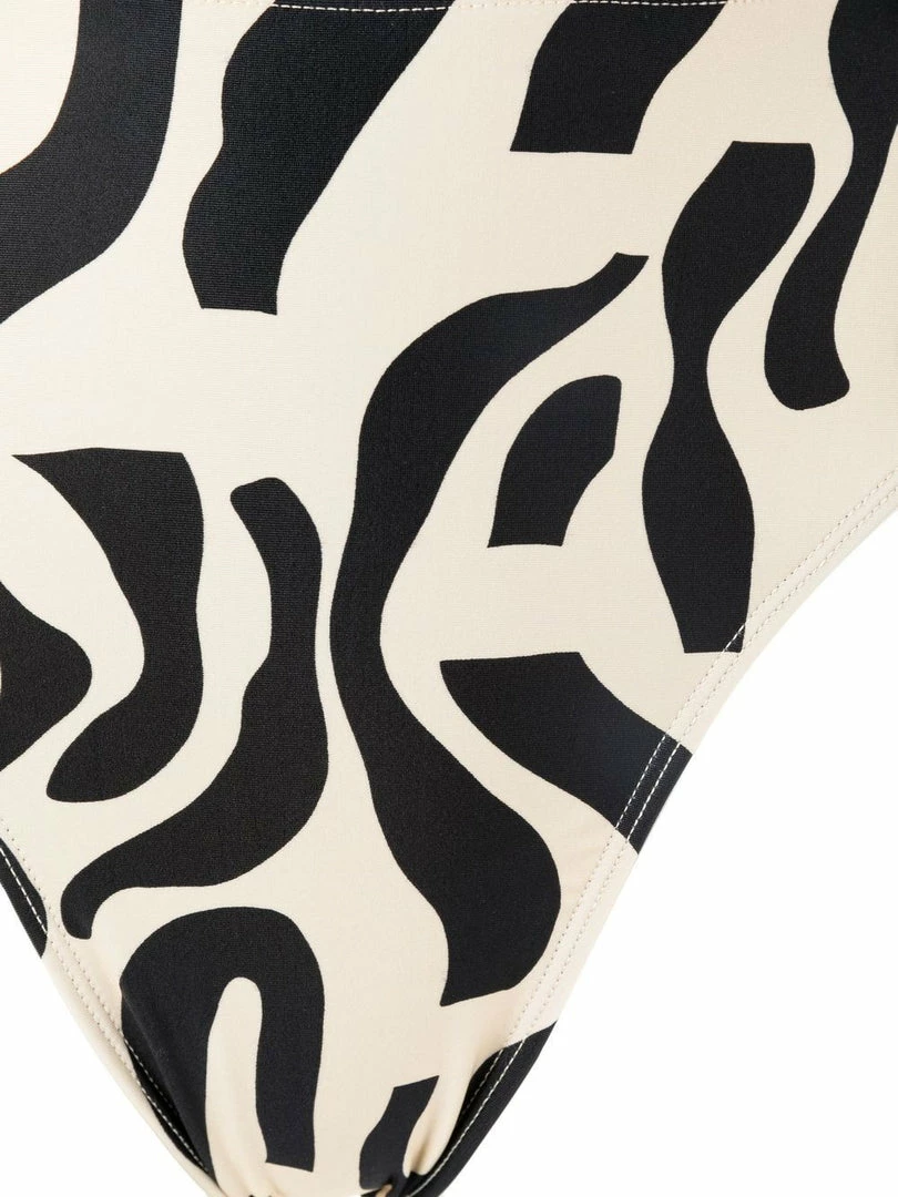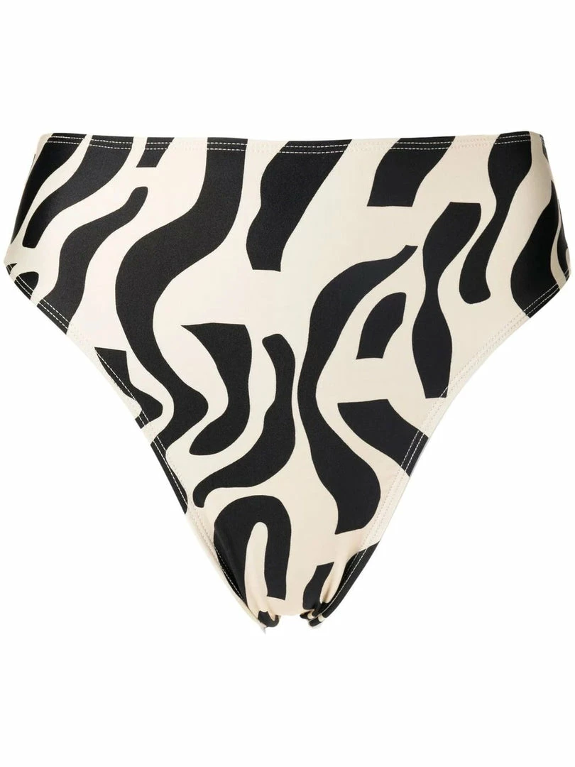 Faithfull The Brand ‘Chania’ bikini bottoms featuring a high waist style, a black and cream abstract print and pulls on. Item fits true to size. Model is wearing a size S.Â