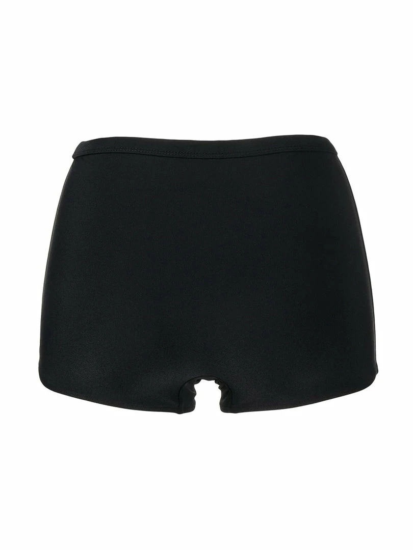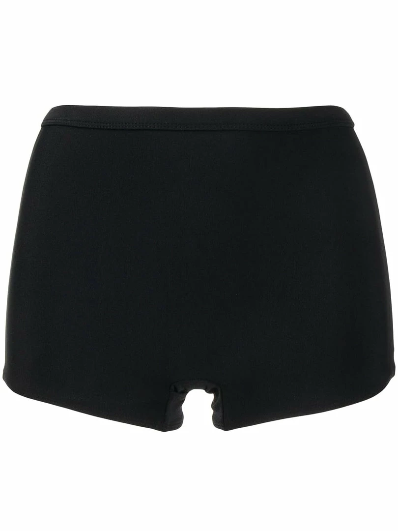 Faithfull The Brand black ‘Kenzie’ bikini bottoms featuring an elasticated waistband and a boy-short high waisted style. Item fits true to size. Model is wearing a size S.Â