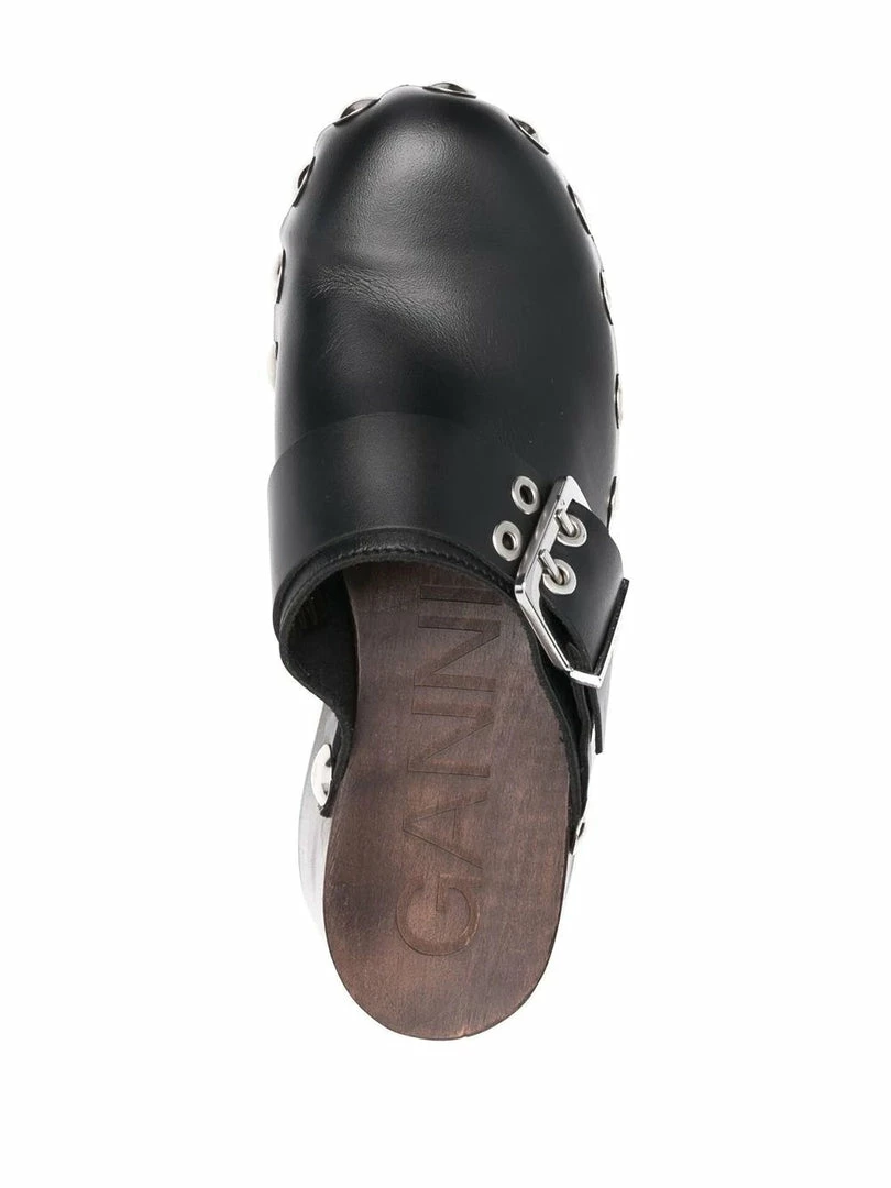 Ganni Black ‘Studded Buckle Clogs’