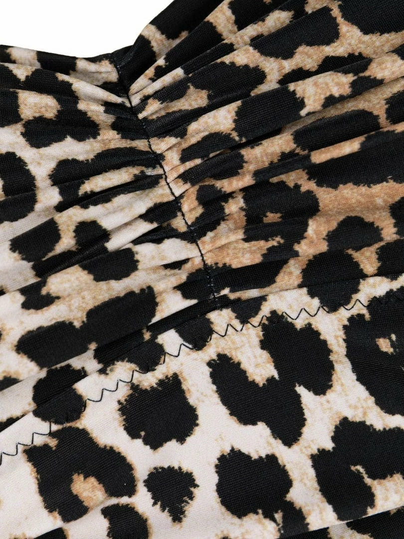 Ganni brown and beige ‘Leopard Swimsuit’ featuring detachable and adjustable spaghetti straps, a padded chest, front ruched detailing, a small ‘Ganni’ logo on the back and pulls on. Item fits true to size. French Sizing.