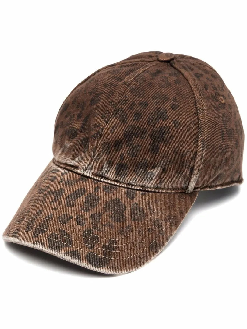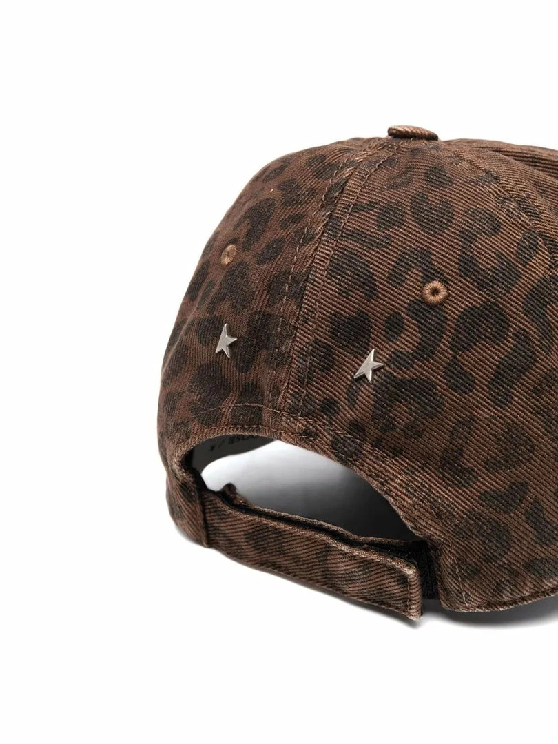 Golden Goose brown ‘Leopard Baseball Cap’ featuring a faded leopard print design, an adjustable velcro strap and star stud details at the back. Made in Italy. One Size.