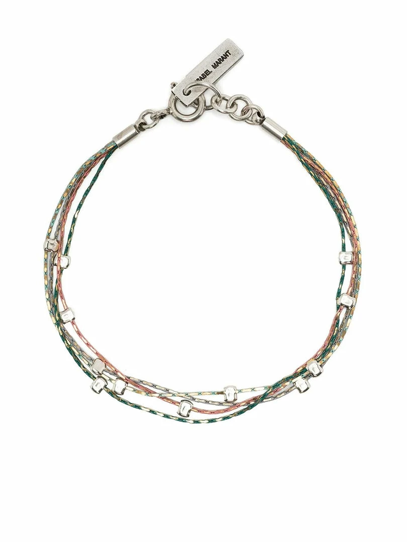 Isabel Marant celadon ‘Multi String Bracelet’ featuring a spring ring fastening, a multi chain design and stud details. Made in Poland.
