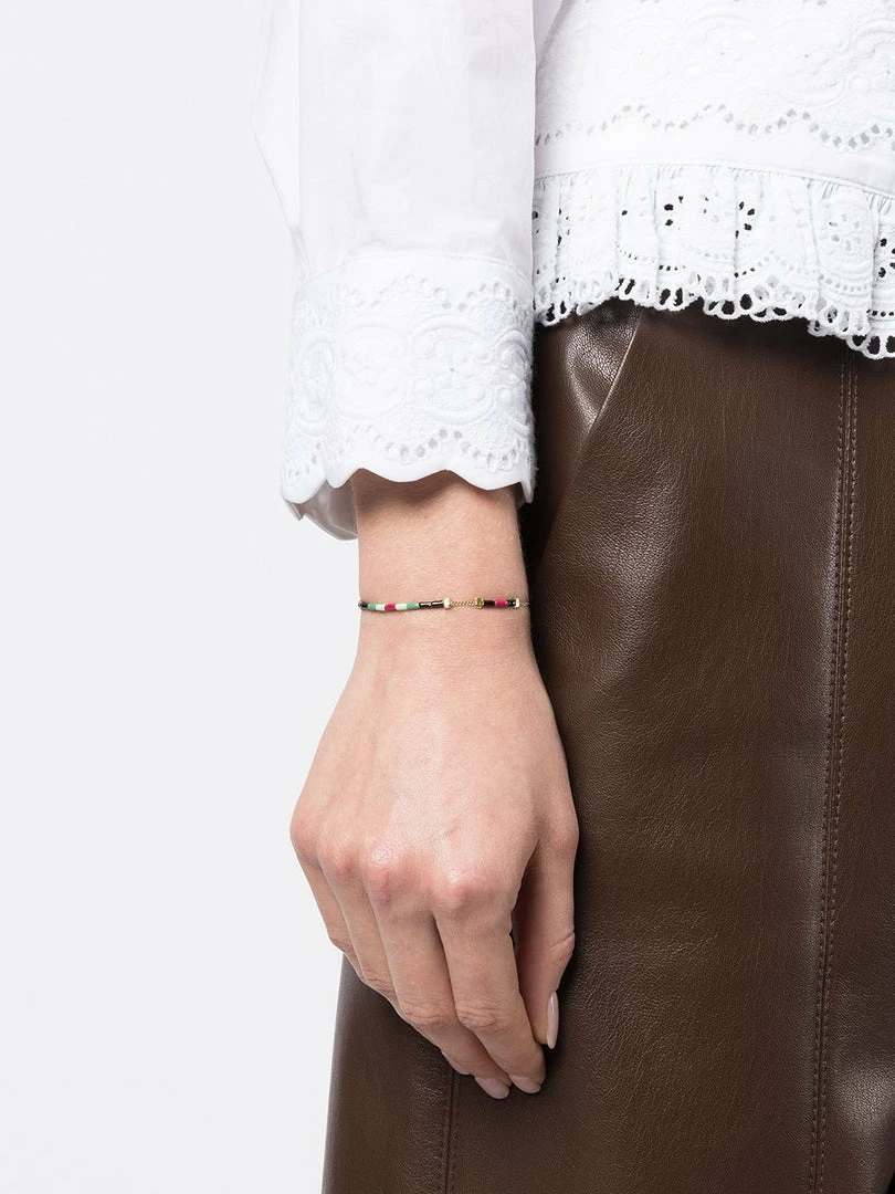 Isabel Marant ‘Colour Stripe Bracelet’ featuring a spring ring fastening, multicoloured long bead details and gold tone hardware. Item is One Size. Made in Poland.Â