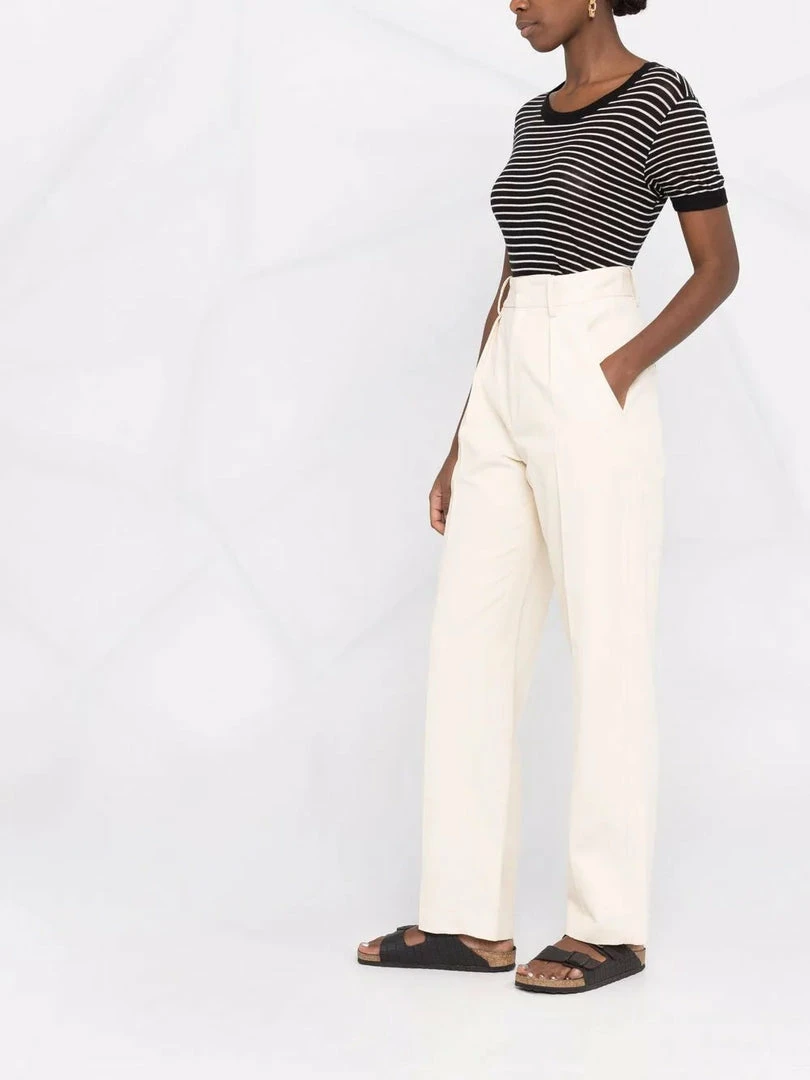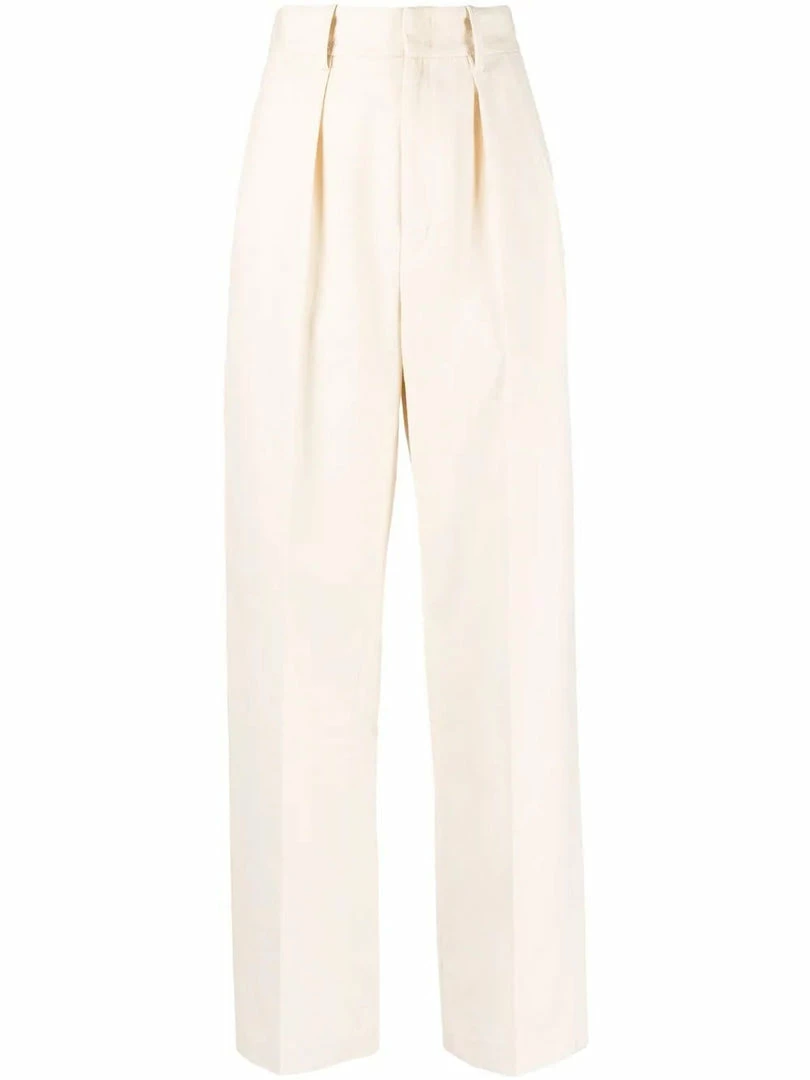 Isabel Marant Etoile cream ‘Miro’ textured trousers featuring a front zip and hook fastening, belt loops, a four pocket design, a straight leg fit, textured fabric and a high rise style. Item fits true to size. Model is wearing a size 36 FR.