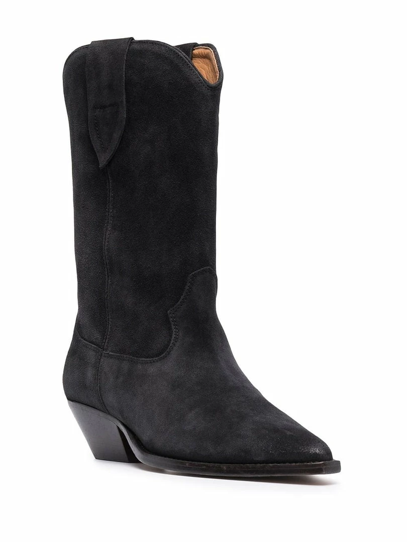 Isabel Marant faded black ‘Duerto’ boots featuring a pointed toe, a low block heel, a branded insole and a pull on style. Item fits true to size. European Sizing. Made in Portugal.