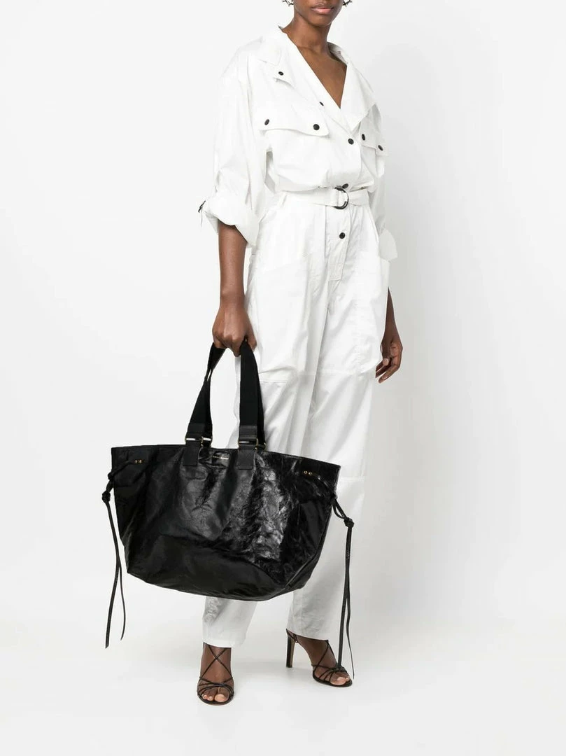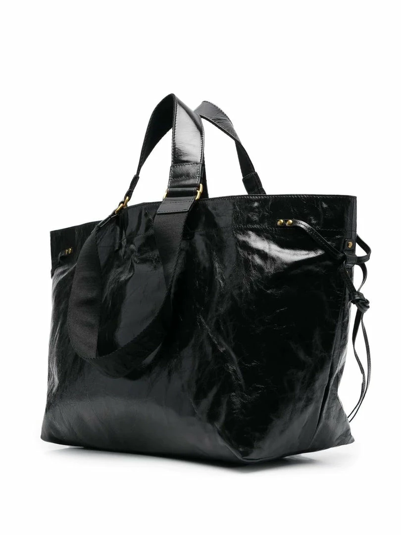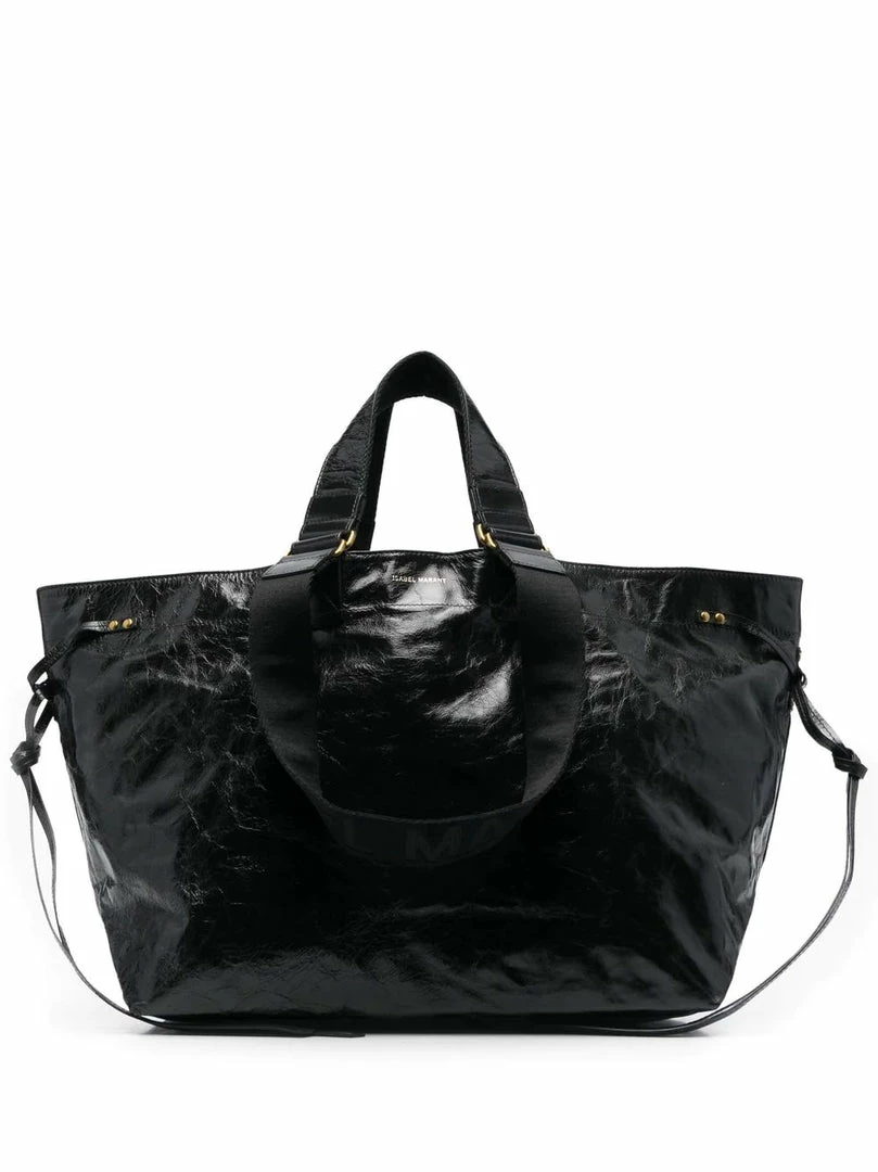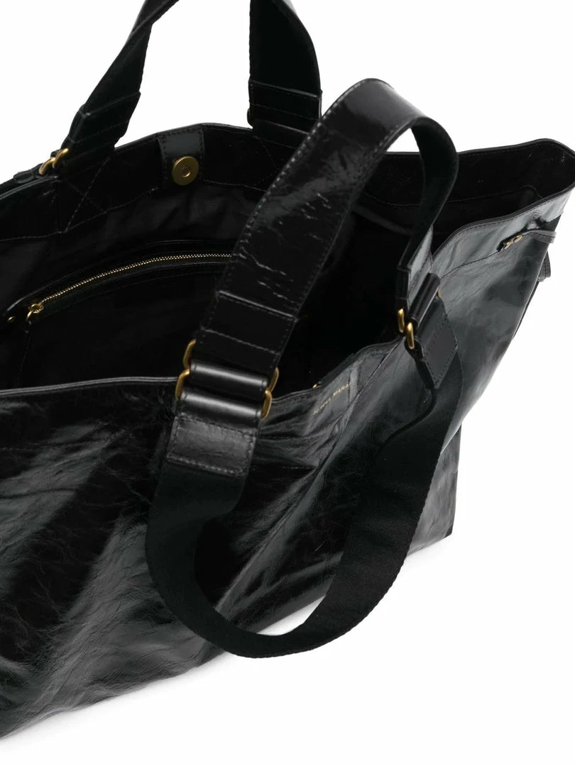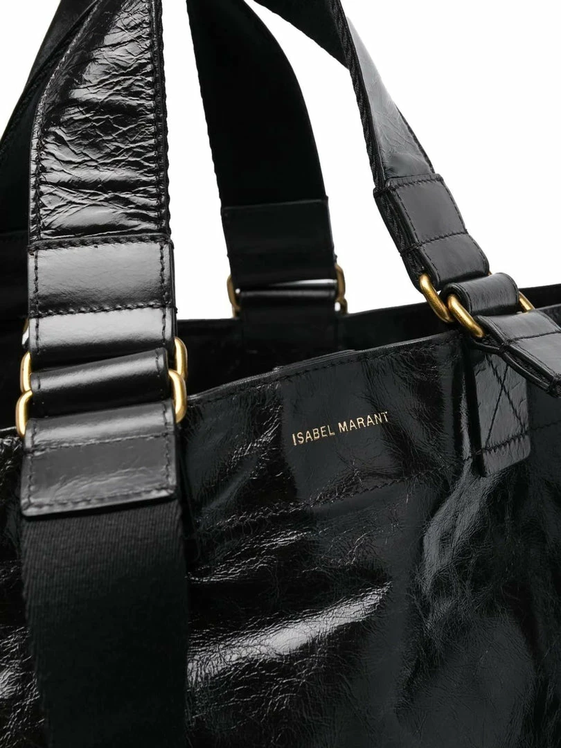 Isabel Marant black ‘Wardy’ tote bag featuring four top handles, a concealed magnetic fastening, an internal zip pocket, a cracked effect, a single shoulder strap and gold-tone hardware. One Size.Â