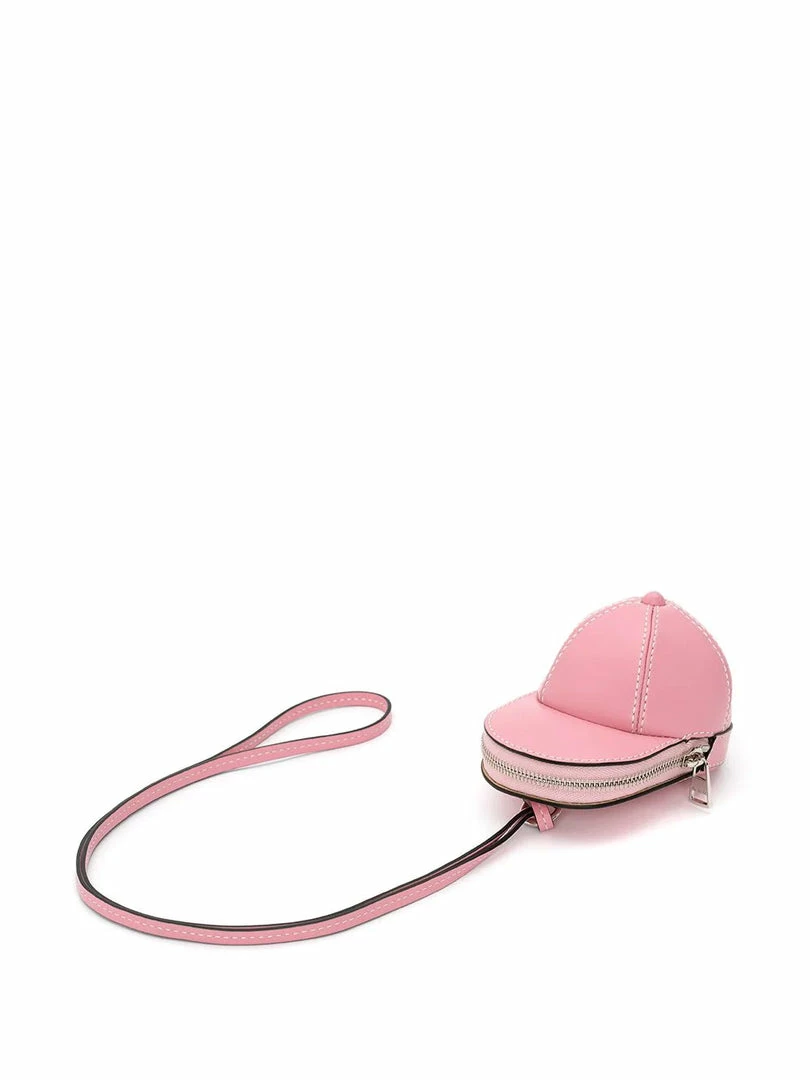 JW Anderson baby pink ‘Mini Nano Cap Bag’ featuring a long shoulder or hand strap, a zip fastening, contrast stitching, silver tone hardware and a matte finish. Made in Hungary.