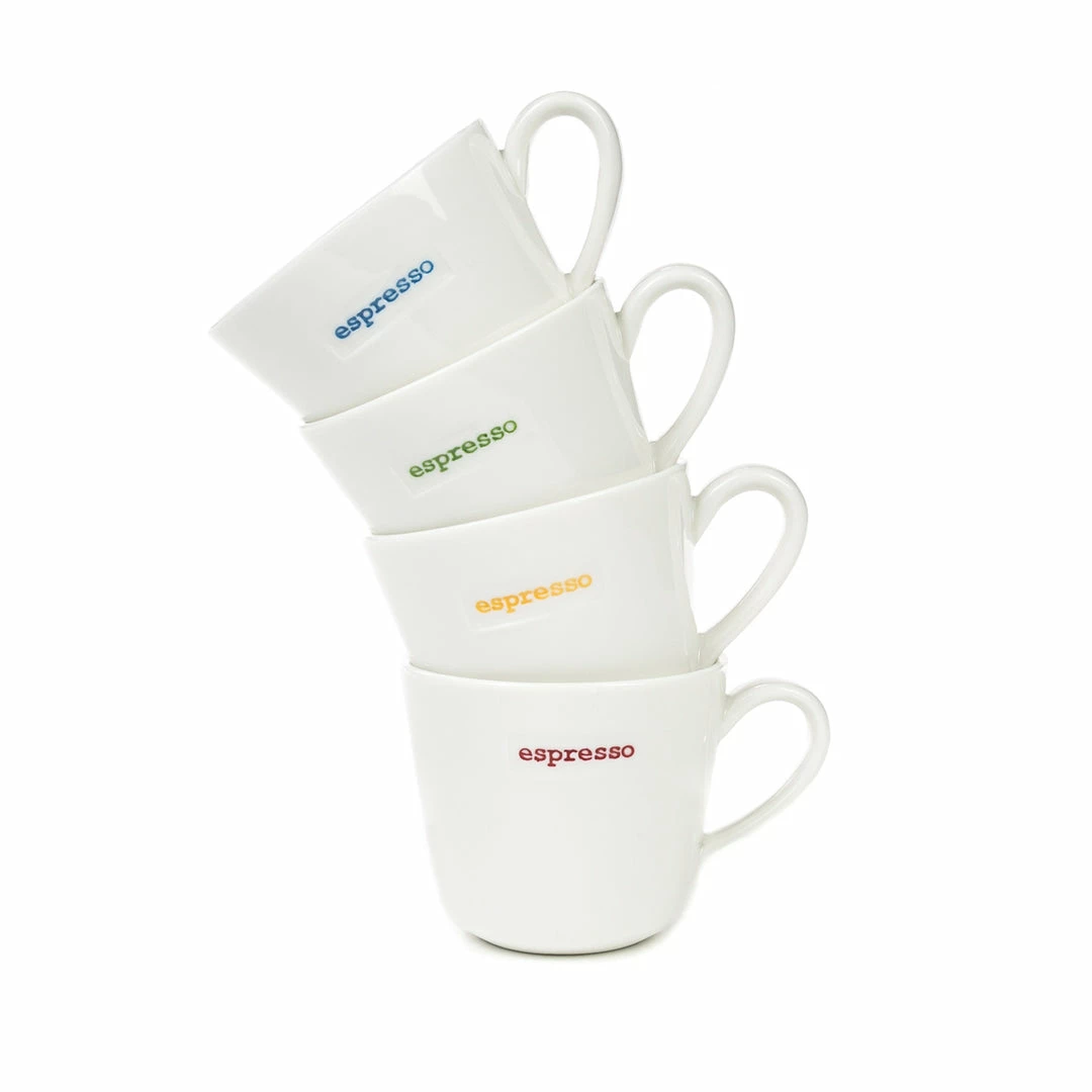 This Keith Brymer Jones espresso set is hand-embossed with the word “espresso” which comes as a set of four espresso cups. Each espresso cup is inlaid in different vibrant colours of red, blue, green and orange! Each espresso cup has a capacity of 100ml’s.