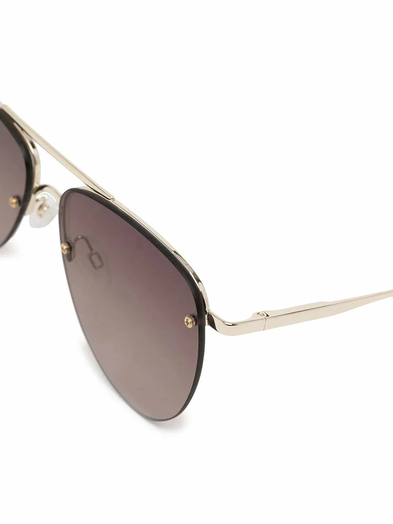 Le Specs unisex ‘The Prince’ gold metal frame sunglasses featuring brown tinted lenses, straight arms and curved tips. These glasses come with a protective case. One Size. Made in China.Â