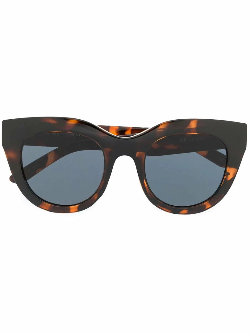 Le Specs ‘Air Heart’ brown tortoiseshell sunglasses featuring a thick cat eye frame, straight arms and curved tips. These glasses come with a protective case. One Size. Made in China.Â