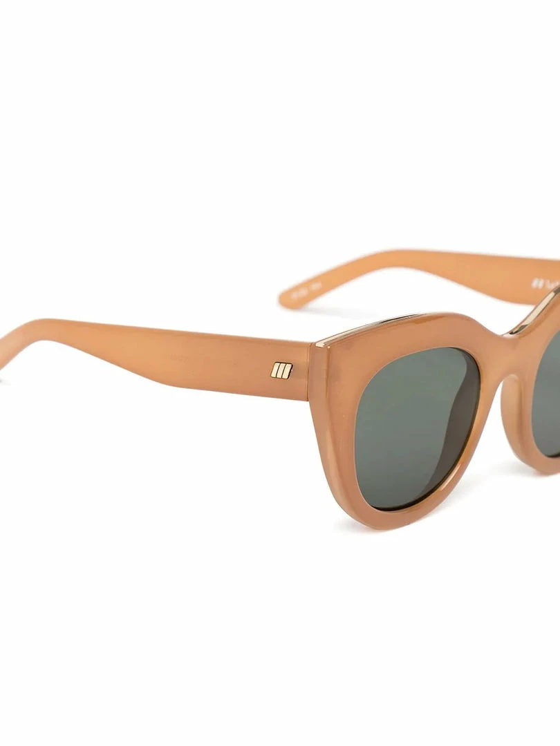 Le Specs ‘Air Heart’ caramel toned sunglasses featuring a thick cat eye frame, straight arms and curved tips. These glasses come with a protective case. One Size. Made in China.Â