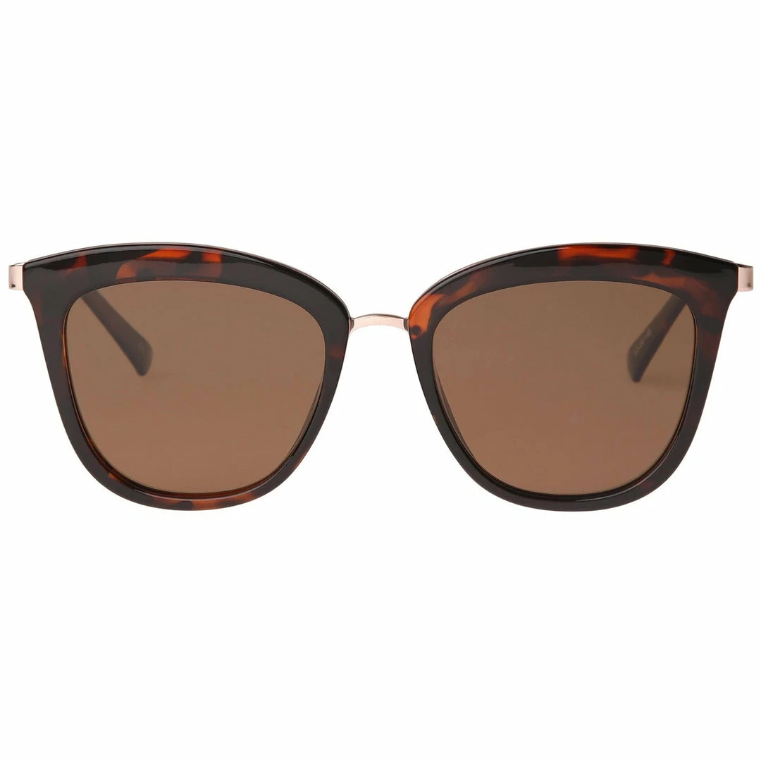 Le Specs rose gold tortoiseshell ‘Caliente’ sunglasses featuring a cat eye frame, straight rose gold metal arms and curved tips. These glasses come with a protective case. One Size. Made in China.Â