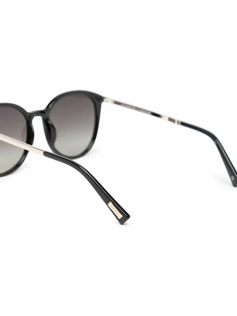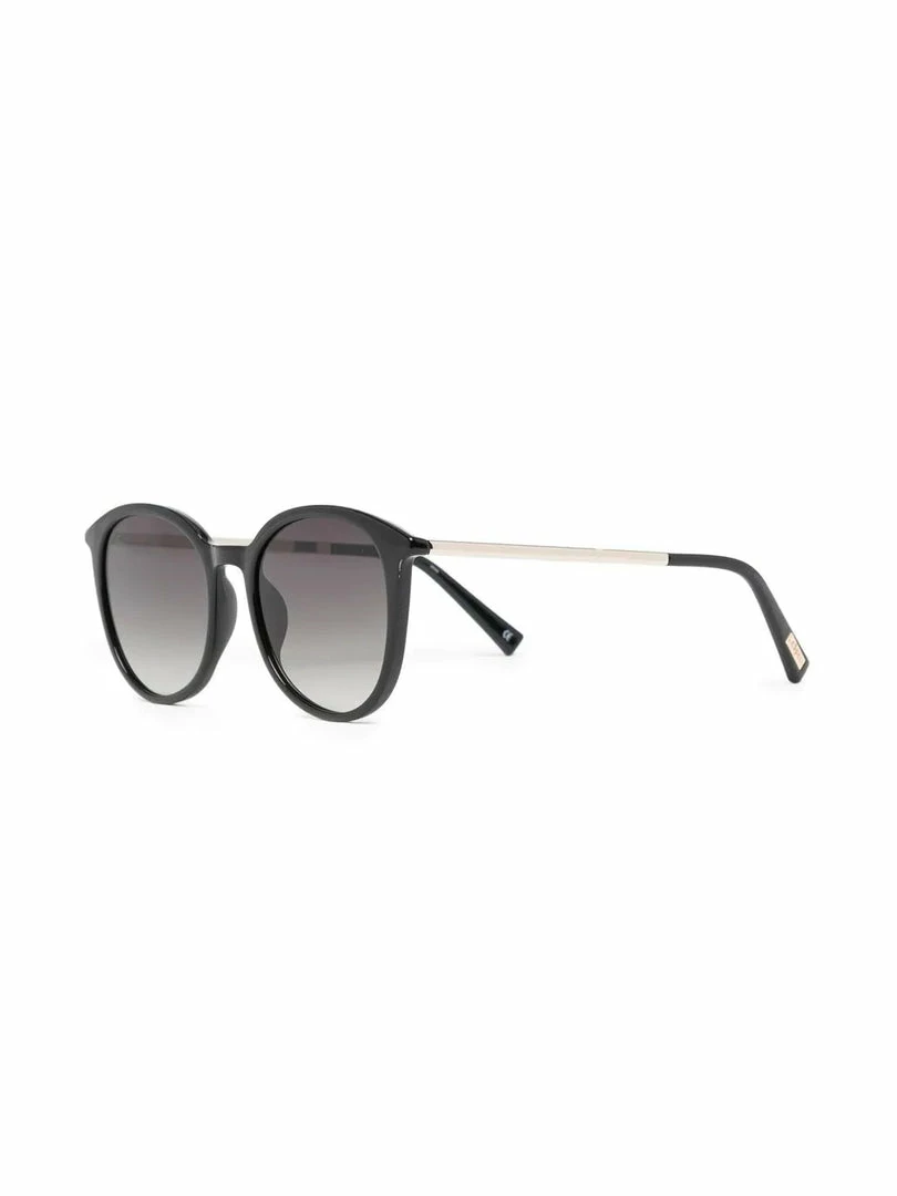 Le Specs black and gold ‘Le Danzing’ sunglasses featuring a round frame, gold straight arms and black curved tips. These glasses come with a protective case. One Size. Made in China.Â