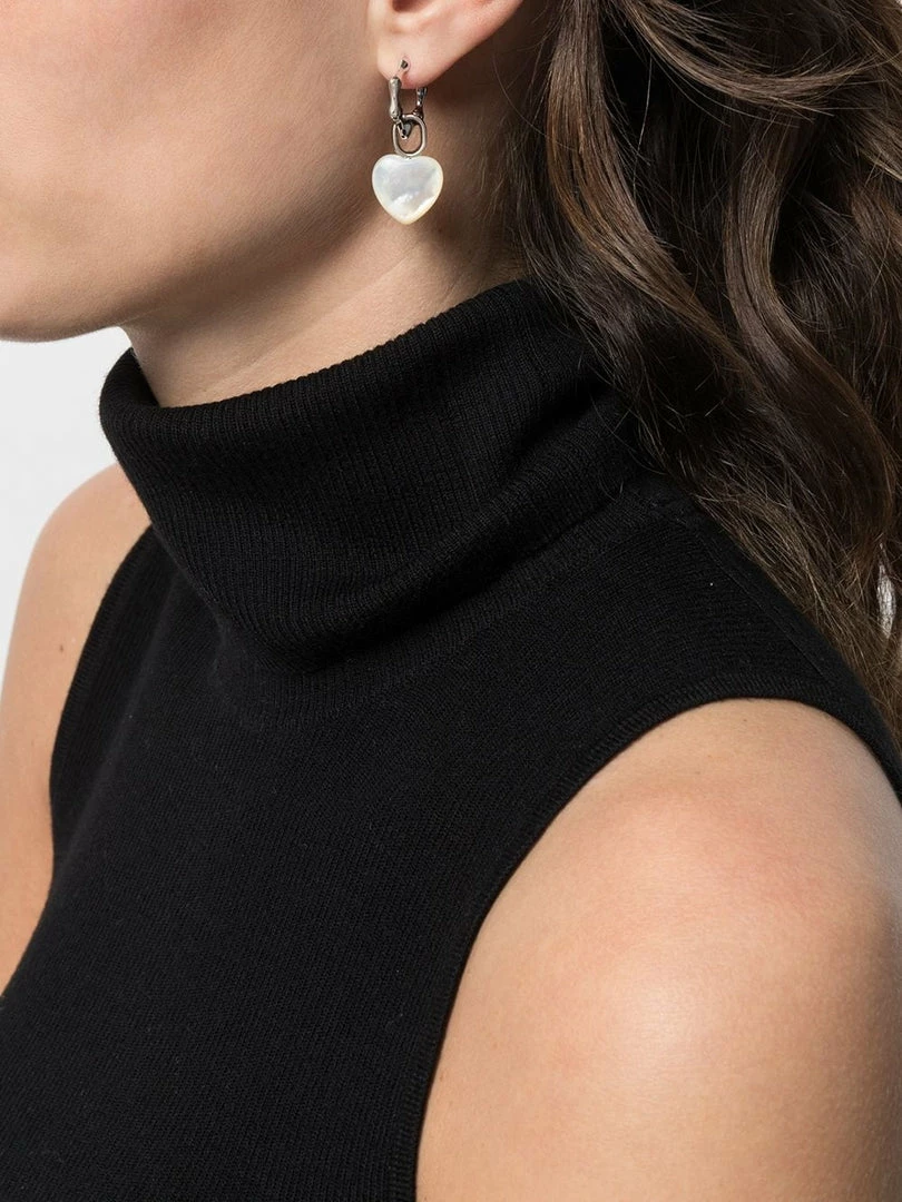 Maria Black silver ‘Milla’ heart huggie earring featuring a ridged hoop design, a heart pearl charm and a clip fastening. One Size. Sold as a single earring.