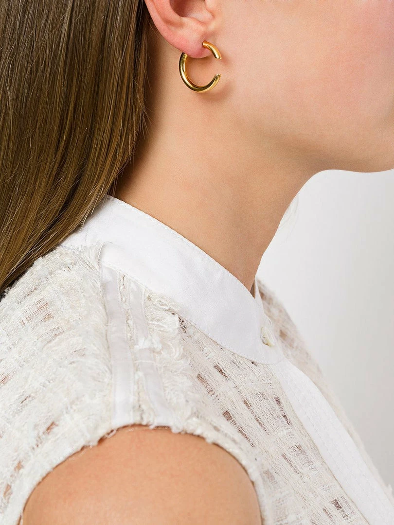 Maria Black 18K yellow gold plated sterling silver ‘disrupted 22’ hoop earring featuring a bar pin fastening. Sold as a single earring.