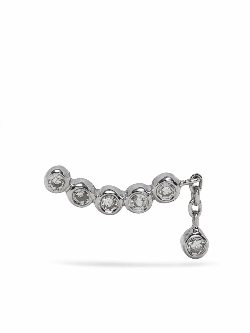 Maria Black silver ‘Quadron MD Labret Right Earring’ featuring six diamonds, a curved and dropped diamond design and a stud fastening. Sold as a single earring.
