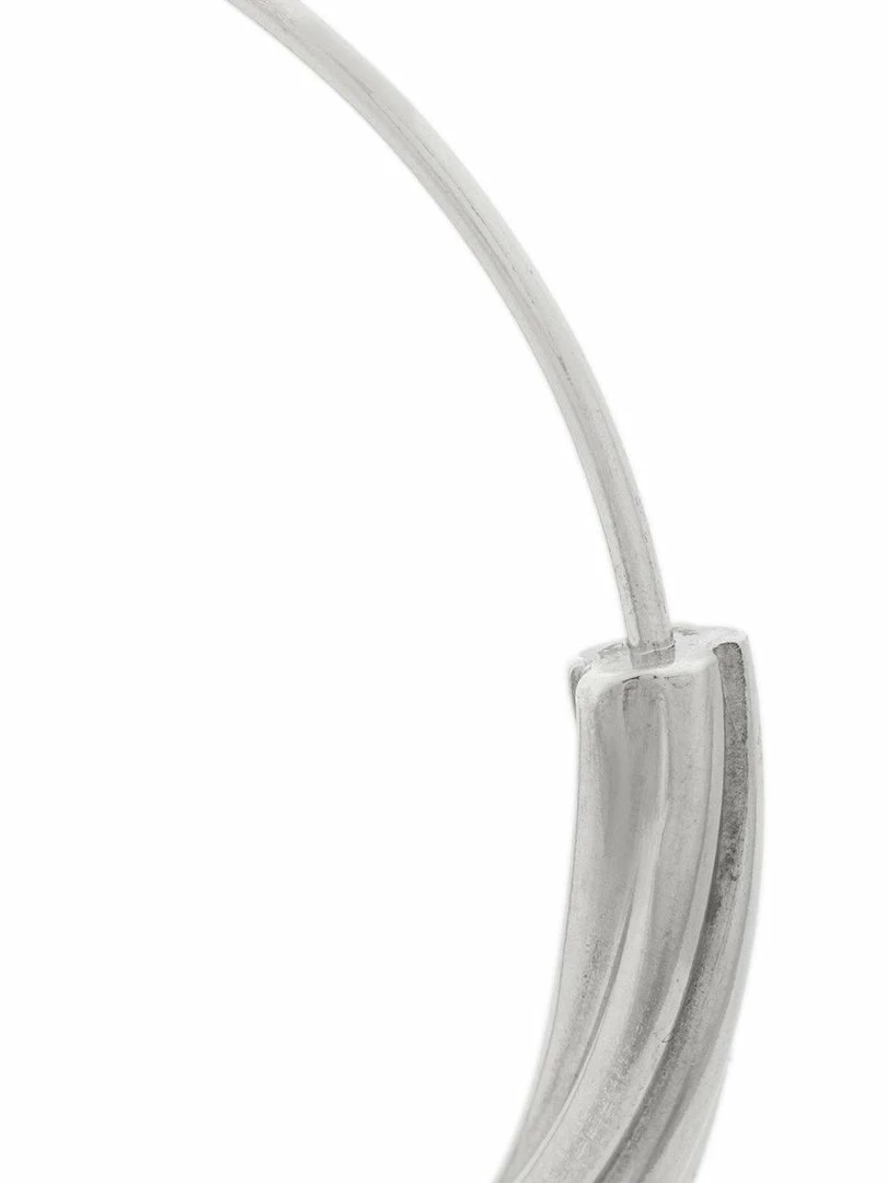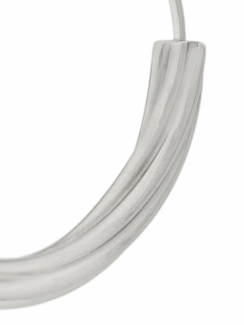 Maria Black white rhodium plated sterling silver ‘tove’ medium hoop earring featuring an entwined twisted detail, a clip in fastening. Sold as a single earring.
