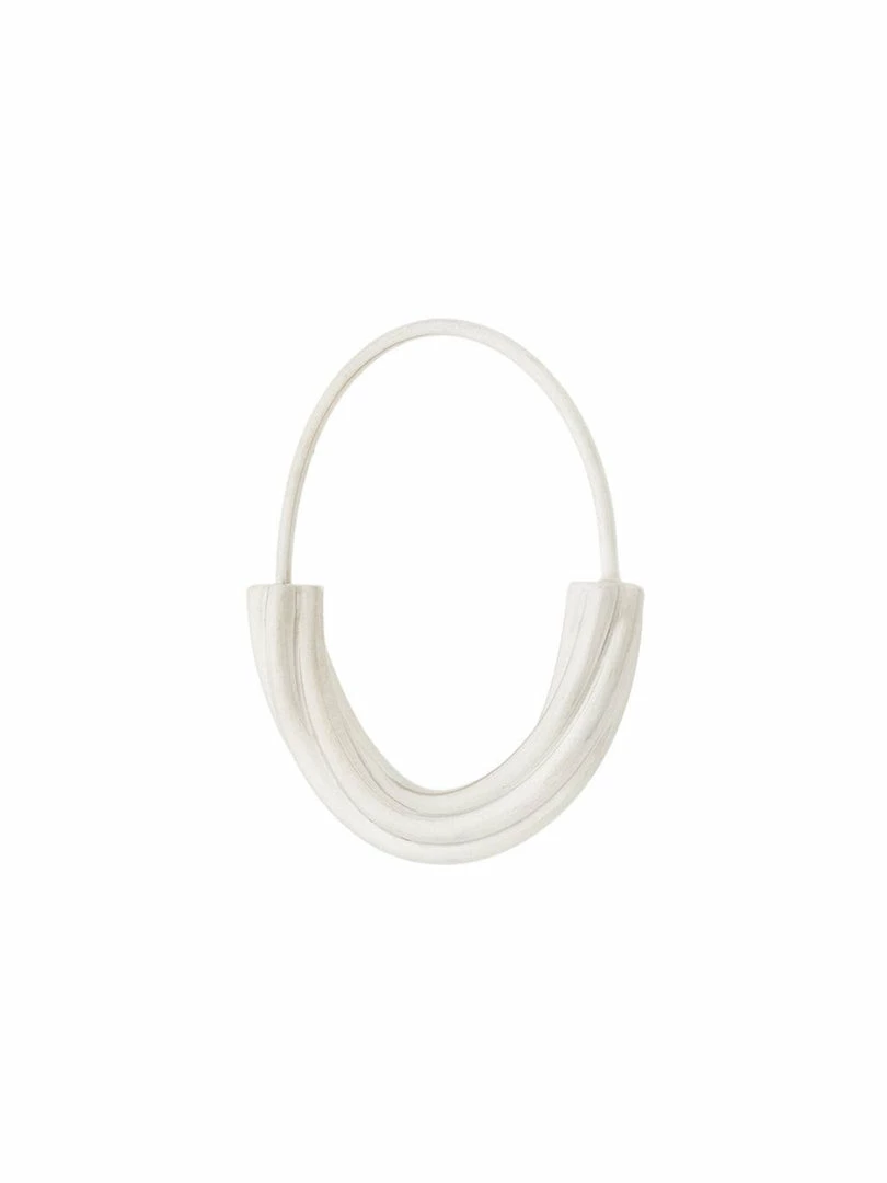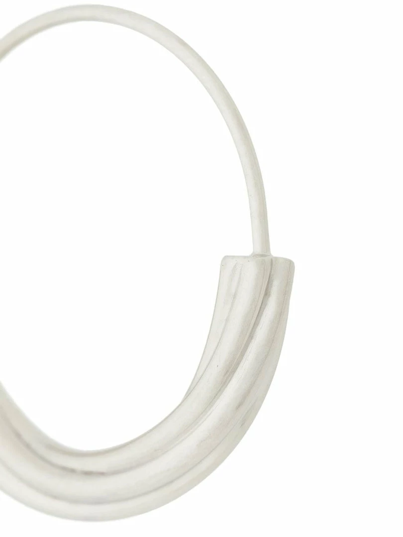 Maria Black white rhodium plated sterling silver ‘tove’ small hoop earring featuring an entwined twisted detail, a clip in fastening. Sold as a single earring.