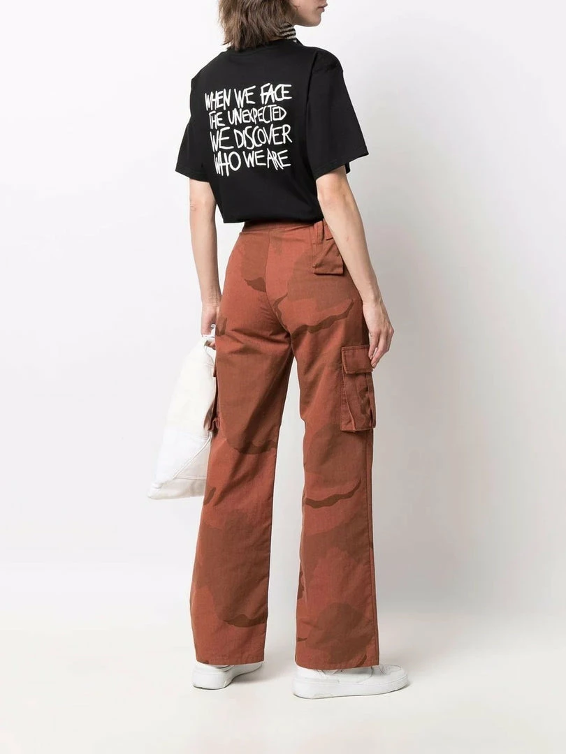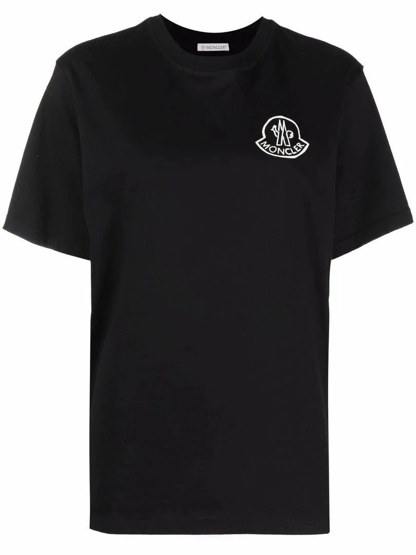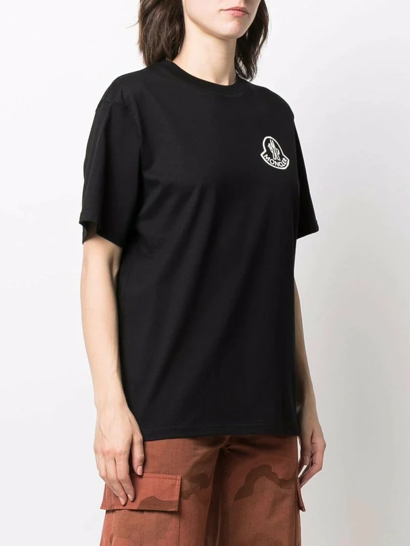 A trans seasonal design, this Moncler T-shirt is equally bold when styled alone or layered under knits, hoodies or outerwear. Crafted from lightweight cotton, this classic crew neck, short sleeve T-shirt is refreshed with a graphic print on the back. Item fits true to size. Model is wearing a size XS.