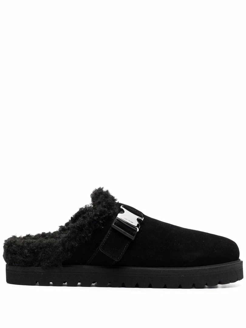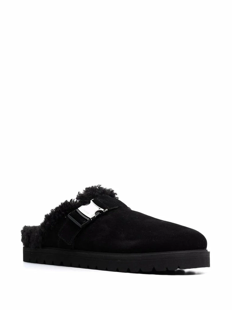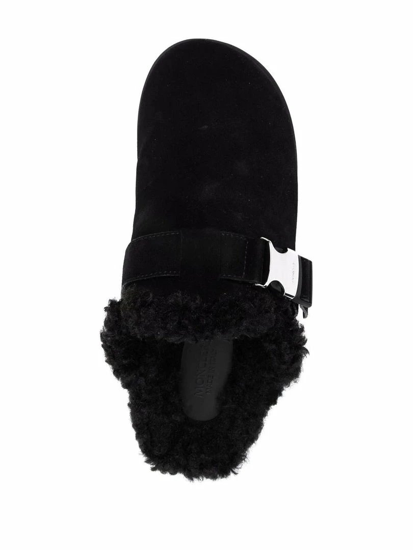 The Mon Mule is a fashionable footbed for women that will add Moncler’s elegant flair to casual looks for both indoors and out. This style is crafted in suede and is finished with soft faux shearling fur that helps to provide an easy, comfortable fit. The strap is equipped with a quick release logo buckle. Made in Italy. Item fits true to size. European Sizing.
