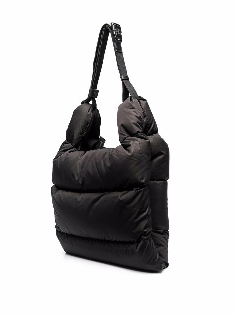 Moncler black ‘Legere’ large tote bag featuring an adjustable hand or shoulder strap, a zip fastening, a padded design, a front logo patch, an inner two compartment design and a side slip pocket. Made in Romania. One size.
