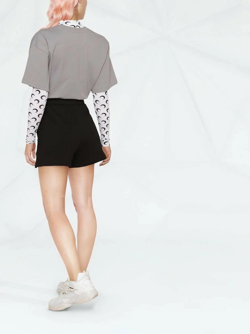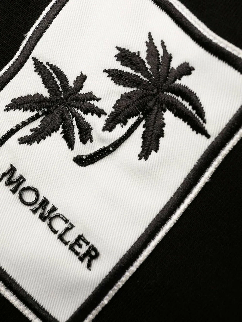 Moncler black ‘Palm Tree Detail Shorts’ featuring an inner drawstring waist, side slip pockets, a logo and palm tree patch to the front and pulls on. Item fits true to size. Model is wearing a size XS.