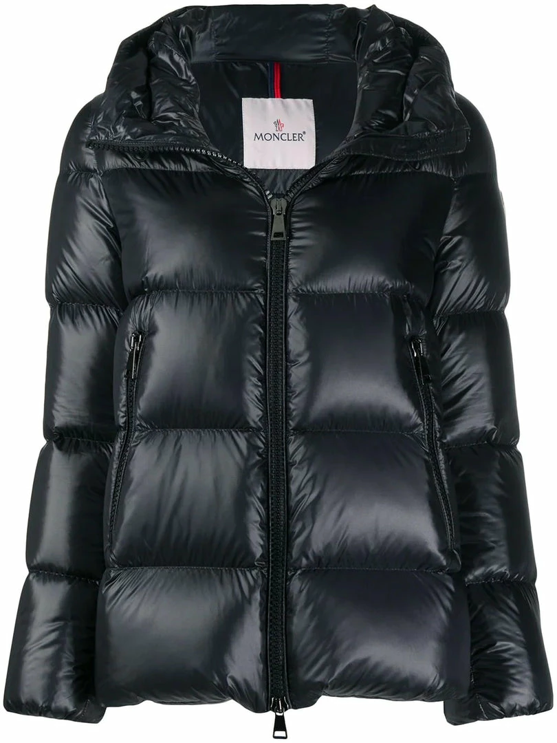 Moncler ‘Seritte’ puffer jacket featuring a drawstring hood, a front zip fastening, long sleeves with a logo patch on the left arm, elasticated cuffs, two front zip pockets and a padded design. Item is slightly oversized. Model is wearing a size 0.