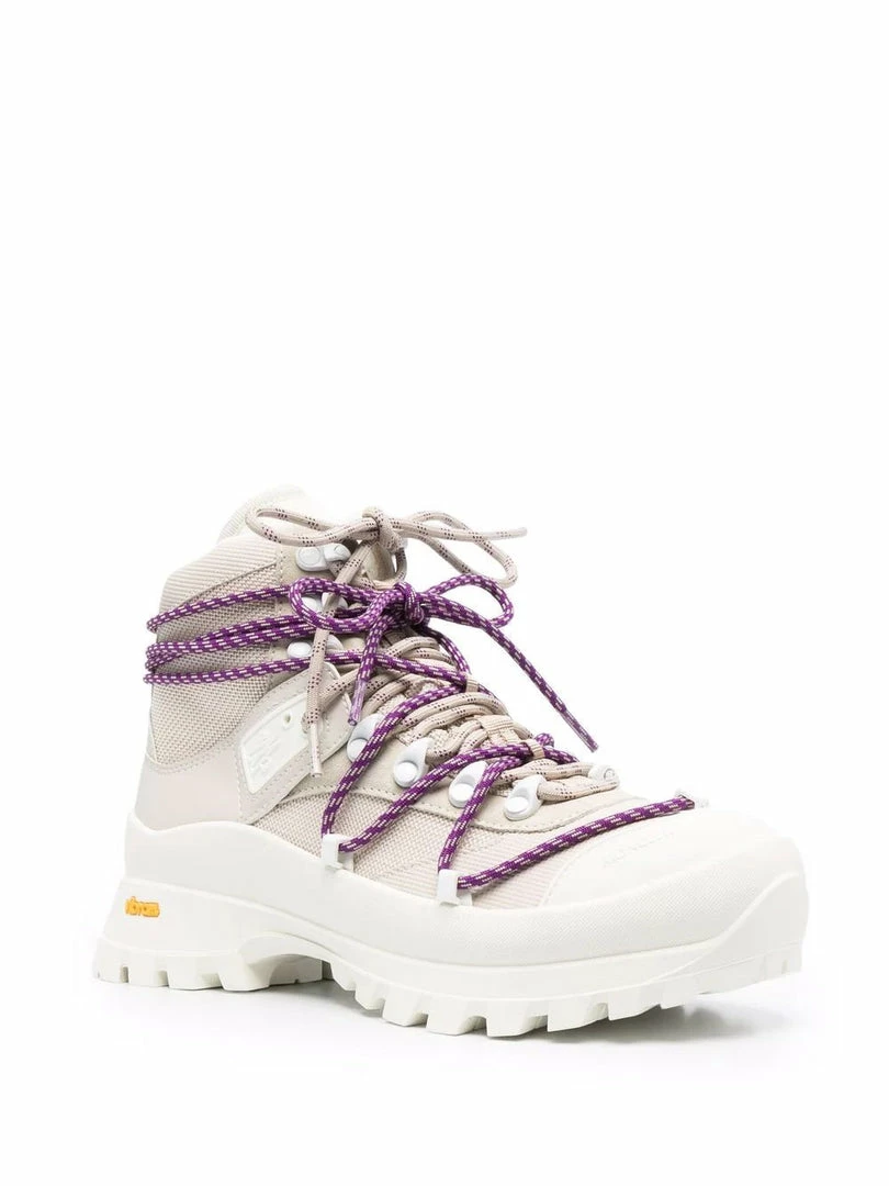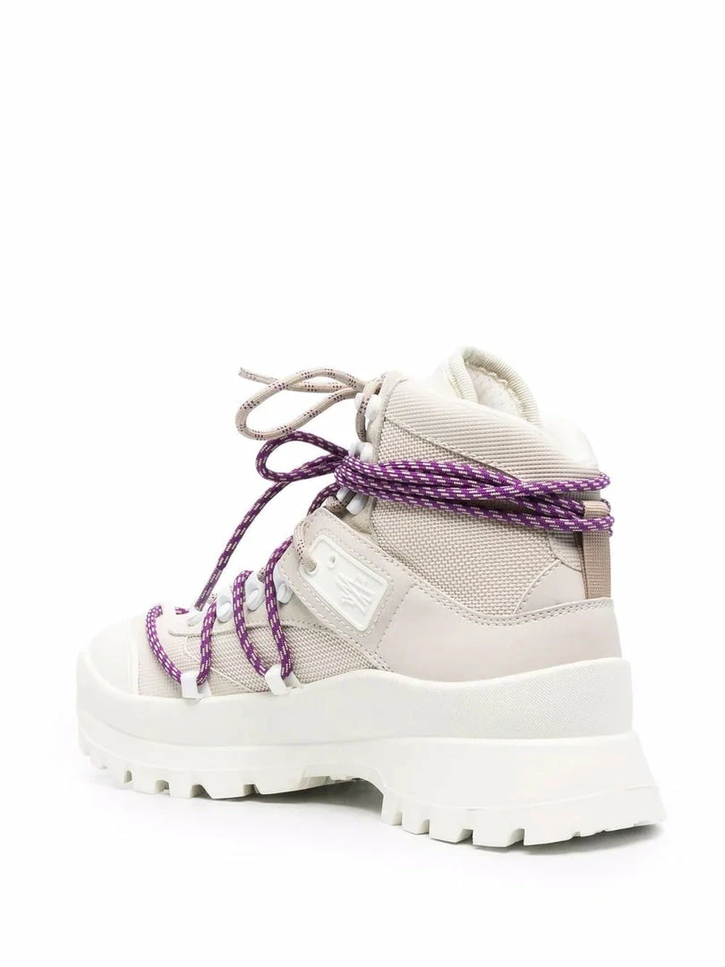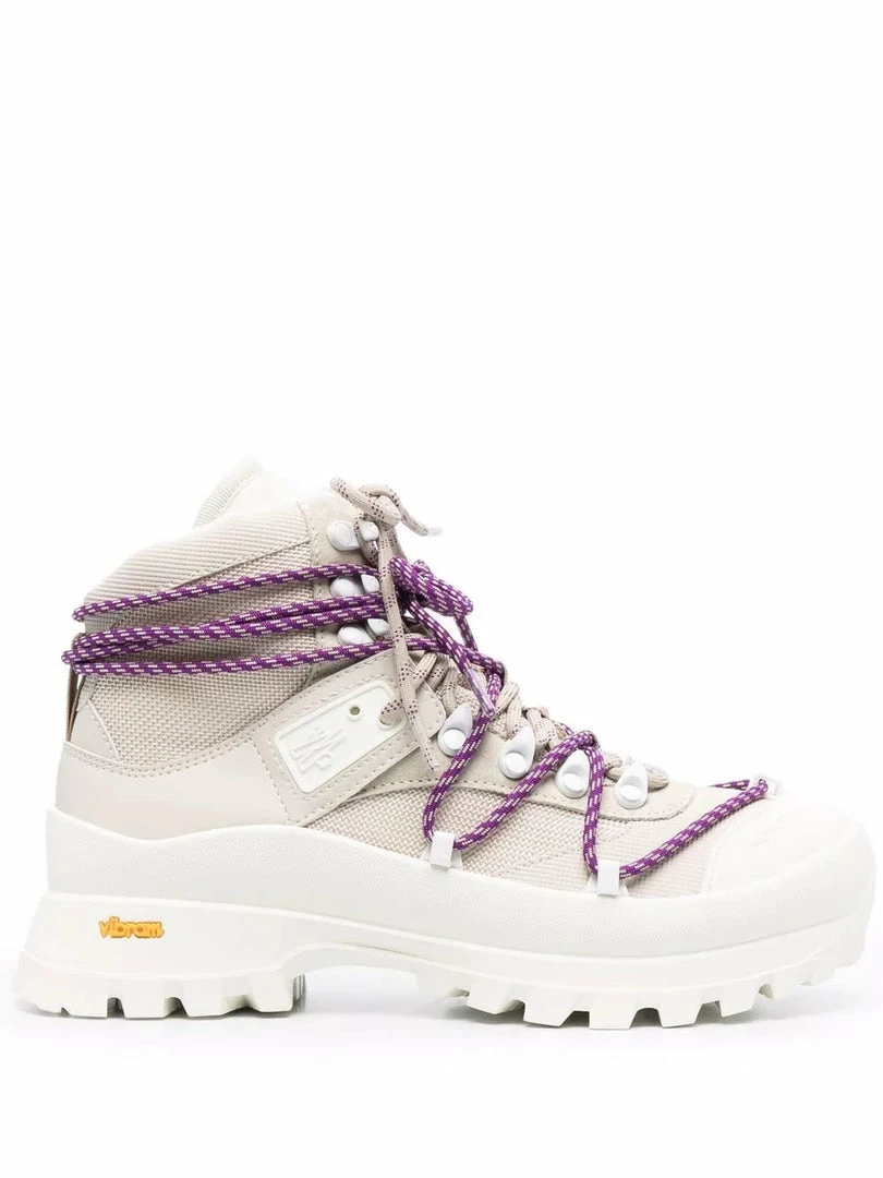 The Glacier ankle boots for women are rugged, resistant and feature graphic details that nod to the world of hiking and high-performance. Moncler continues its experimentation in high-performance and protection from the elements. The Glacier ankle boots are characterized by a waterproof inner membrane and a durable non-slip VIBRAM® rubber outsole for exceptional traction. Made in Italy. Item fits true to size. Italian Sizing.