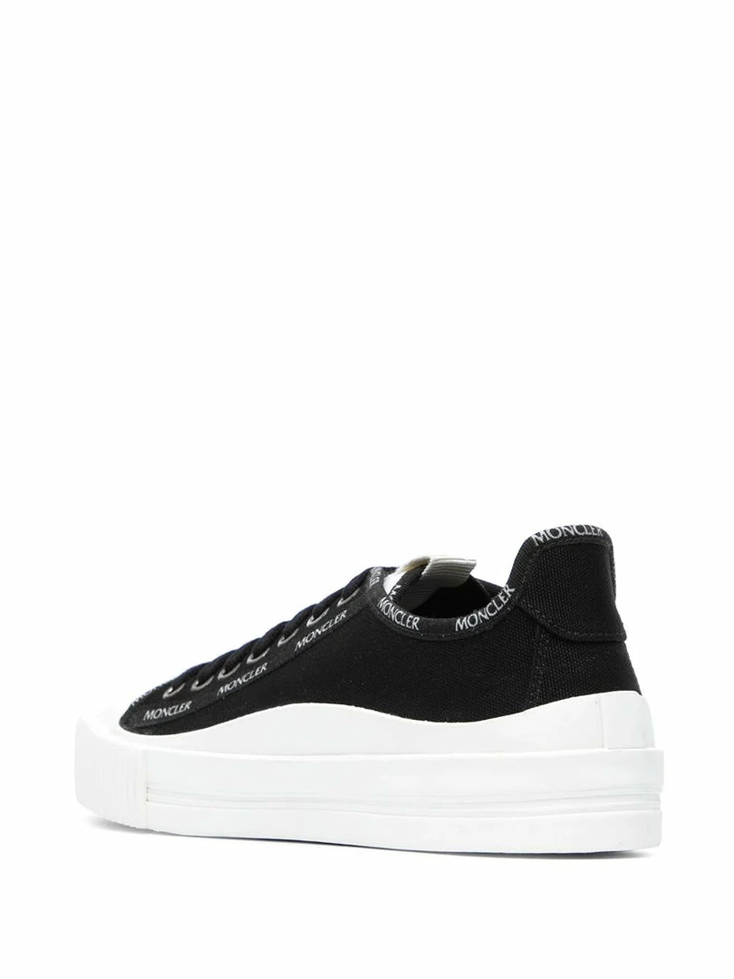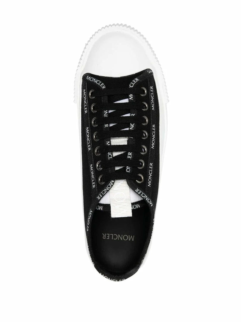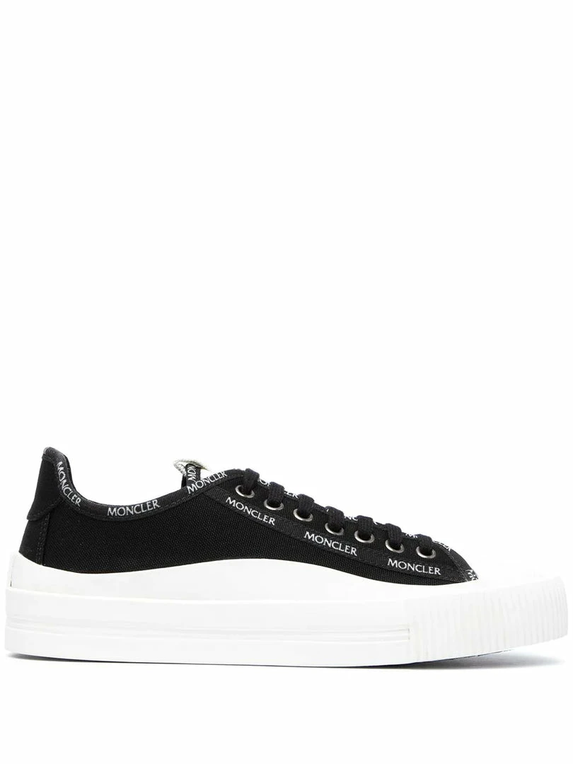 Moncler black and white ‘Glissiere’ trainers featuring a round toe, a lace up fastening, a branded pull tab on the tongue, logo detailing around edges and a chunky white rubber sole. Made in Italy. Item fits true to size. Italian Sizing.