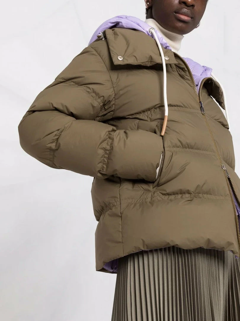 Furthering the season’s aesthetic of cozy layered looks in soft colourways, the Loctudy is crafted from matte nylon. The short down jacket boasts boudin quilting and an adjustable hood in a complementary colour. Item fits true to size. Model is wearing a size 1.