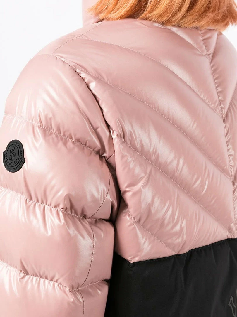 Designed for those who are always on the move, the Morgat down jacket is crafted from glossy nylon laqué… The short puffer features signature boudin quilting and a thermo-applied logo on the back. When layered with separates in contrasting hues, the design plays on the collections young, metropolitan spirit. Boasting a short silhouette enhanced with boudin quilting, the Morgat down jacket is crafted from nylon laqué. Item fits true to size. Model is wearing a size 1.